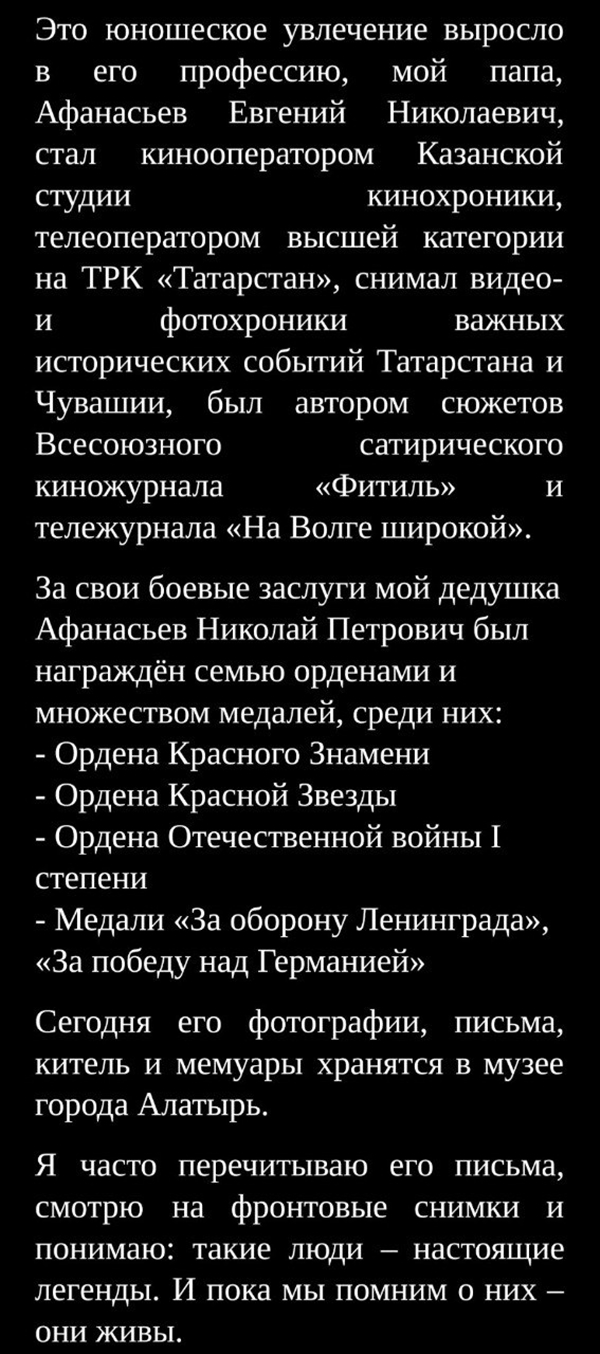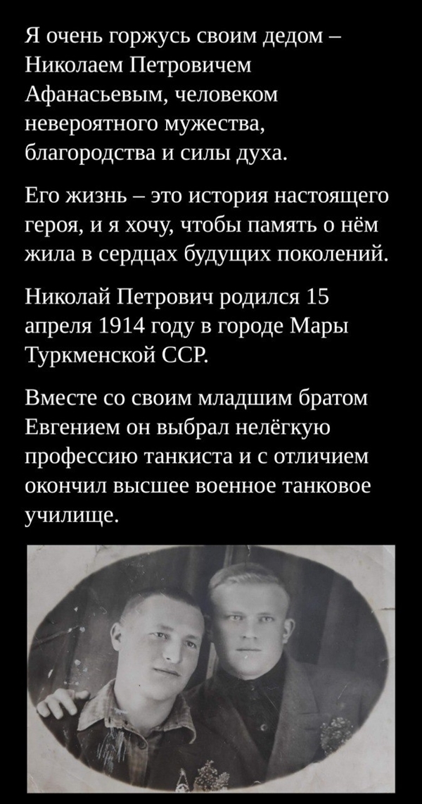 Читательница библиотеки Ольга Коврижных прислала рассказ о своём дедушке Николае Петровиче Афанасьеве. Память о нём хранится в их семье с огромной гордостью и любовью.
