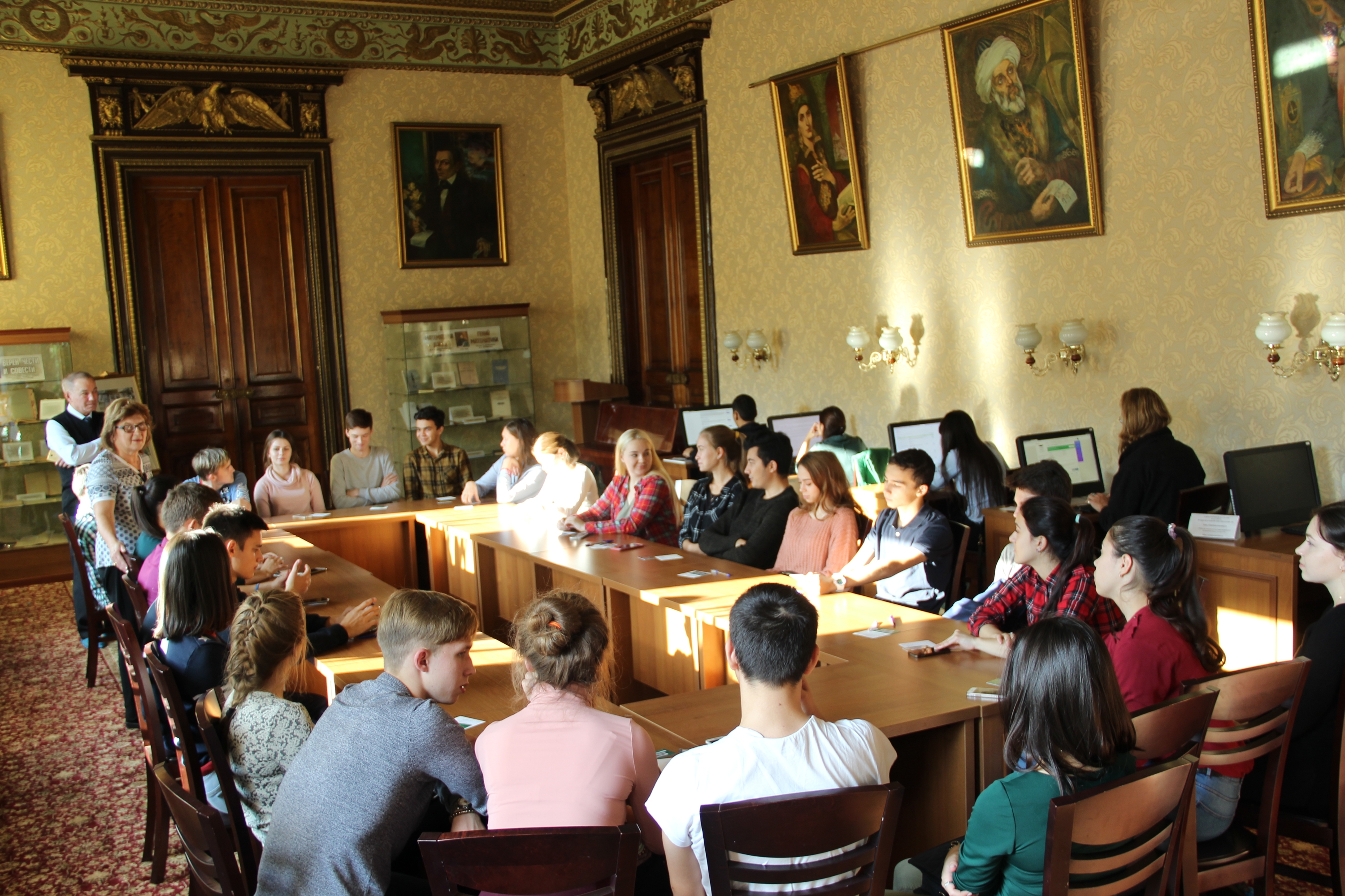 Завершился День информации экскурсией по зданию библиотеки – памятнику архитектуры федерального значения начала XX века. Архитектура и богатая история старинного особняка произвели большое впечатление на первокурсников. На прощание каждый студент получил электронный читательский билет.