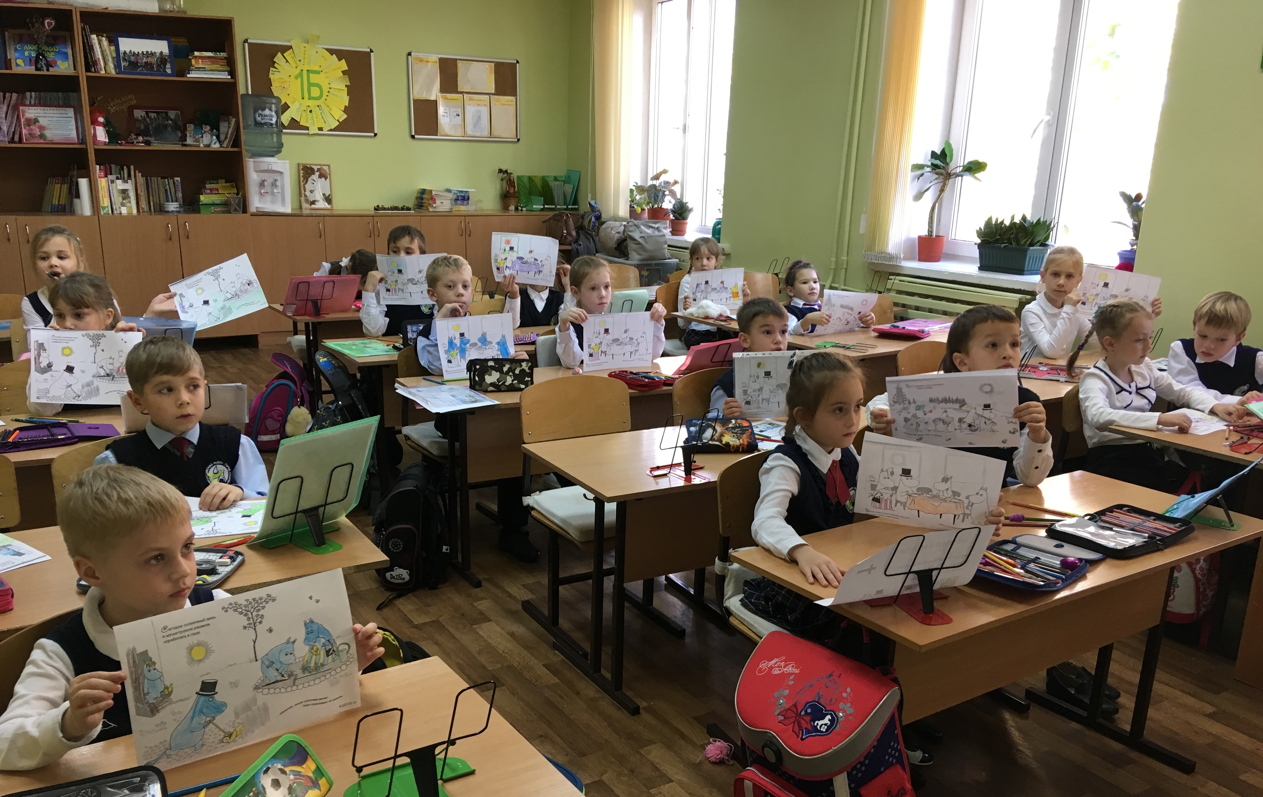 На этот раз ученики первого класса отправились в воображаемое путешествие по Муми-долине. Урок был посвящён серии рассказов про Муми-семейство. Автору Туве Марике Янссон удалось создать рассказы, на которых выросло не одно поколение финских ребятишек. Муми-тролли – это не просто национальное достояние Финляндии, но и любимые персонажи детей и взрослых во всём мире.