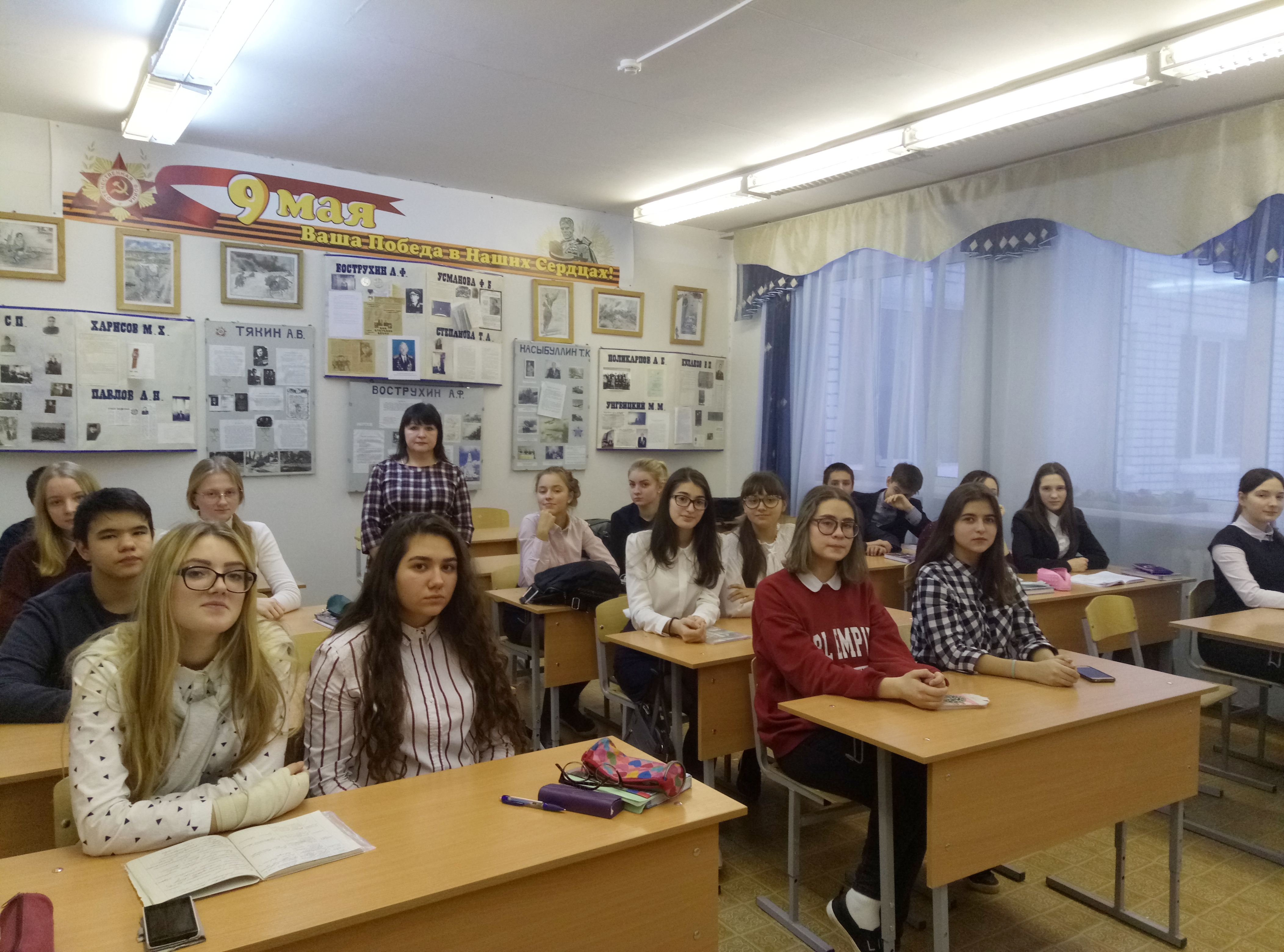 Отдел периодических изданий Национальной библиотеки Республики Татарстан продолжает работу по патриотическому воспитанию молодёжи. 14 декабря 2017 года была организована встреча со старшеклассниками МБОУ «Средняя общеобразовательная школа № 69» Приволжского района г. Казани.