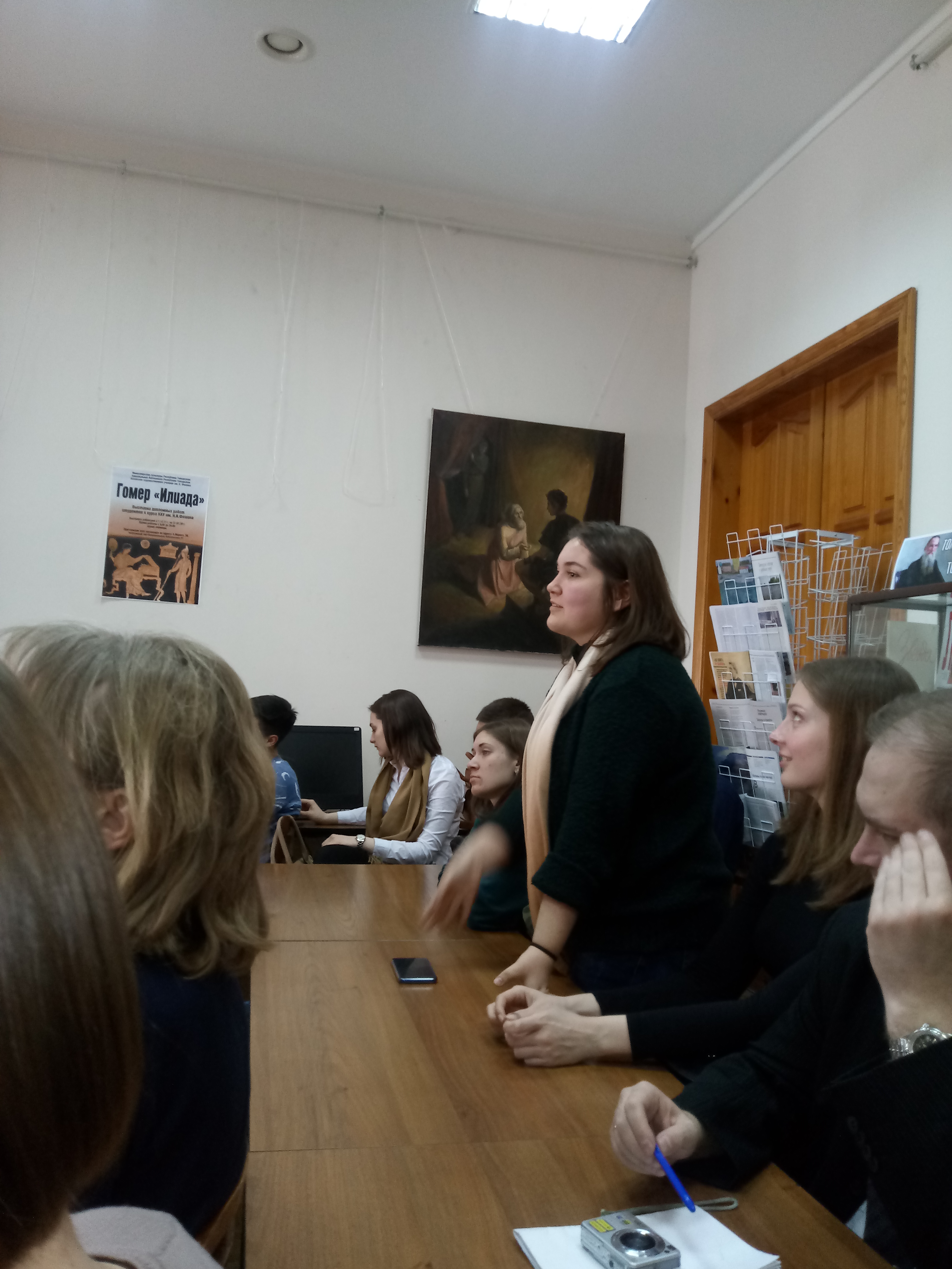 Встреча переросла в диалог, в ходе которого студенты и сотрудники библиотеки задавали гостям вопросы на волнующие их темы, вместе рассуждали о проблемах нашего города: экологической ситуации, сохранении памятников архитектуры, увековечивании памяти выдающихся земляков и др.