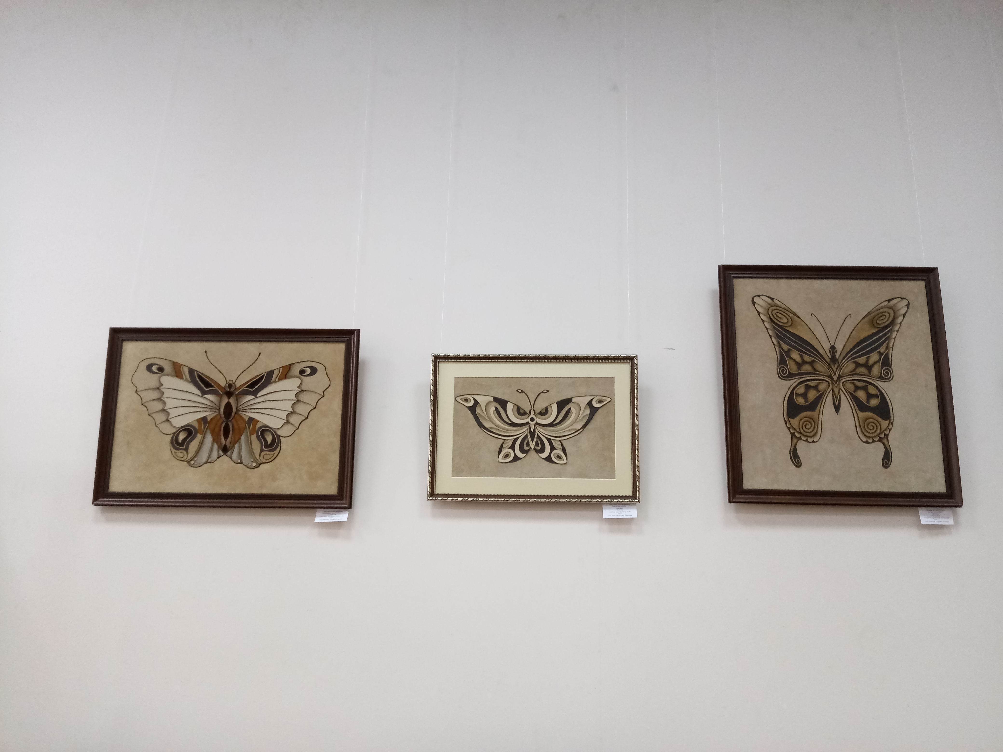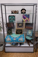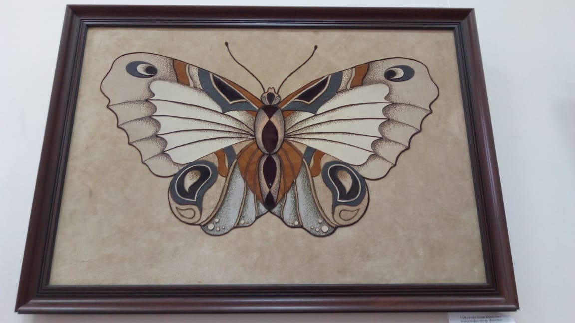 На выставке представлены работы студентов специализации «Декоративно-прикладное искусство и народные промыслы». Это декоративные панно, аксессуары, выполненные с применением различных способов художественной обработки кожи, в числе которых кожаная мозаика, многослойная аппликация, выжигание, тиснение, вышивка по коже. Изделия отличаются изысканностью форм, цветовой гармонией, оригинальностью композиционного решения, высоким уровнем исполнения. В них сочетаются орнаментальные традиции и новаторское применение традиционных техник древнего искусства.