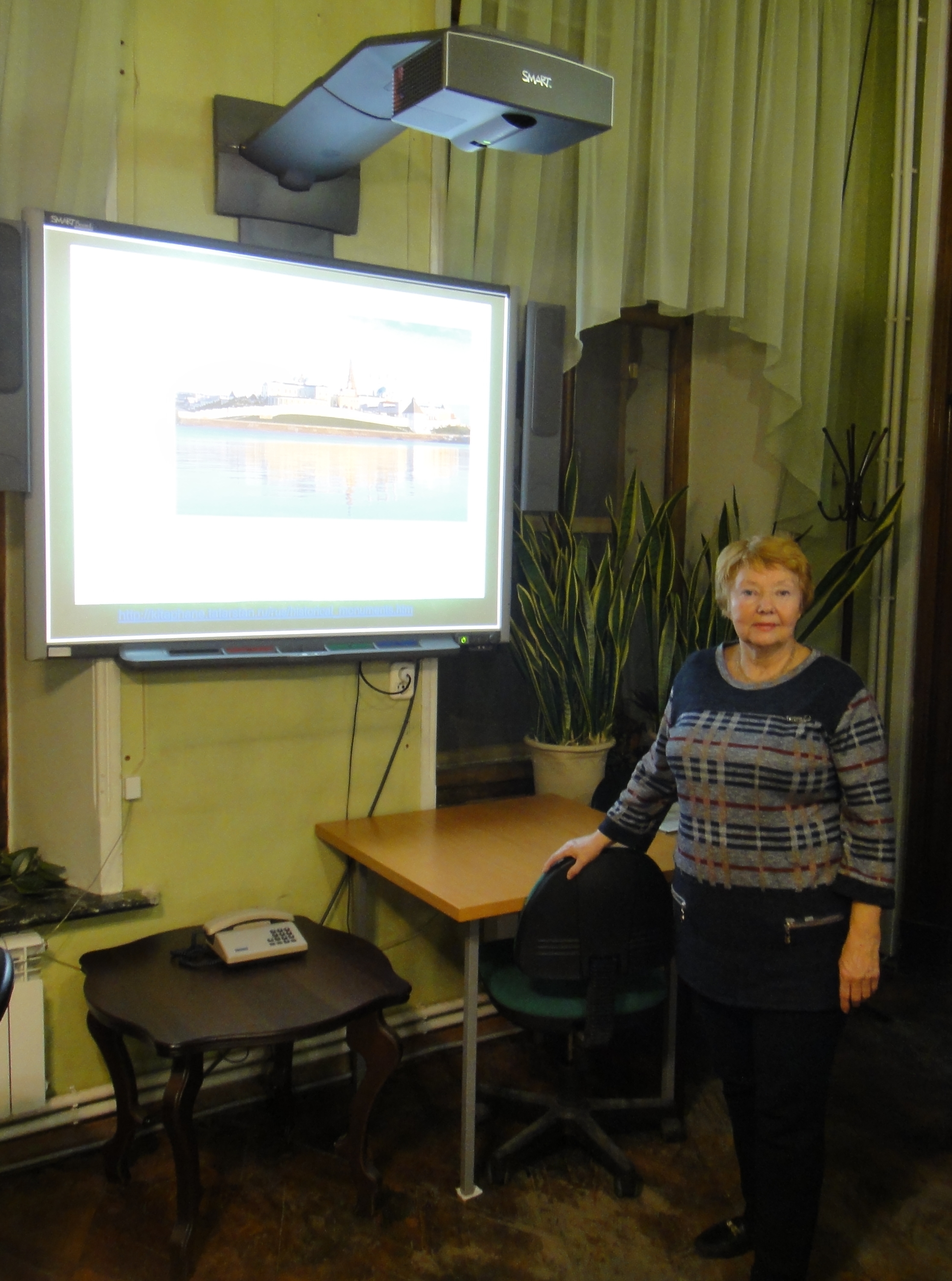 Для слушателей была подготовлена презентация «Достопримечательности Казани, Татарстана» с обзором электронных информационных ресурсов сайта НБ РТ, портала «Национальная электронная библиотека Республики Татарстан» и ряда других сетевых ресурсов по данной теме. Были проведены консультации по поиску информации в электронных коллекциях библиотеки и других справочно-информационных ресурсах сайта. В рамках презентации серии дисков «100 штрихов к портрету города» показан фрагмент видео экскурсии «Губернаторский дворец».