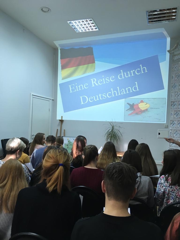 Сотрудники отдела познакомили студентов с 16 федеральными землями, культурой и обычаями, знаменитыми лицами страны, а также был проведён краткий обзор достопримечательностей. Студенты, выполняя задания по теме, проверили, насколько хорошо они знают Германию. Весело подпевали немецкому рэперу и посмотрели небольшой страноведческий фильм.