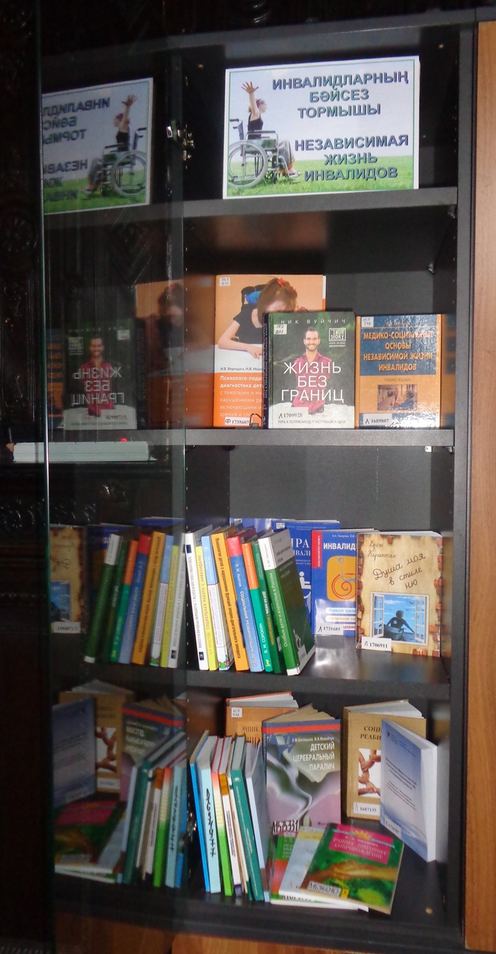 Тематическая подборка книг, приуроченная к Дню инвалидов 3 декабря, раскрывает основные проблемы людей с ограниченными возможностями здоровья, права инвалидов, медико-социальную и психологическую помощь, в том числе социальную реабилитацию. Ряд документов посвящён вопросам образования людей с ограниченными возможностями, независимо от степени тяжести заболевания и возрастных показателей. Отдельно представлены книги, написанные самими инвалидами, несмотря на своё положение, достигшими невероятных высот и получившими мировую известность. В своих книгах они делятся опытом преодоления психологических барьеров, благодарностью людям, оказывающим безвозмездную помощь и многим другим. Одной из таких книг является представленный в экспозиции и пользующийся большой популярностью бестселлер Ника Вуйчича «Жизнь без границ».
