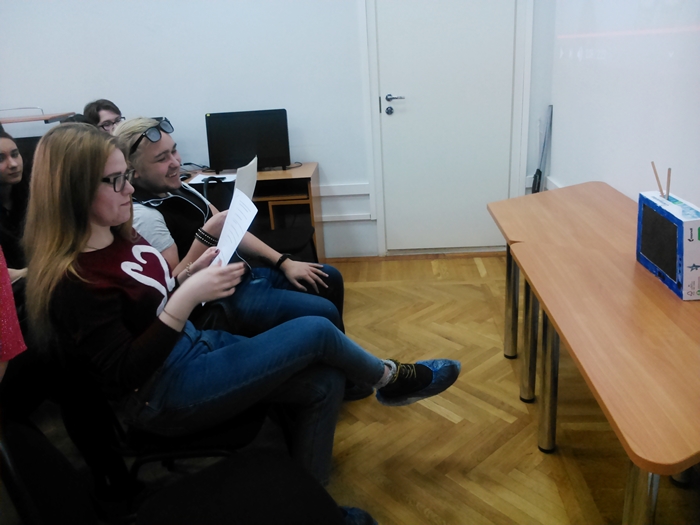 Студенты просмотрели обучающий фильм по теме мероприятия и приняли участие в небольшой сценке «Fernsehabend».