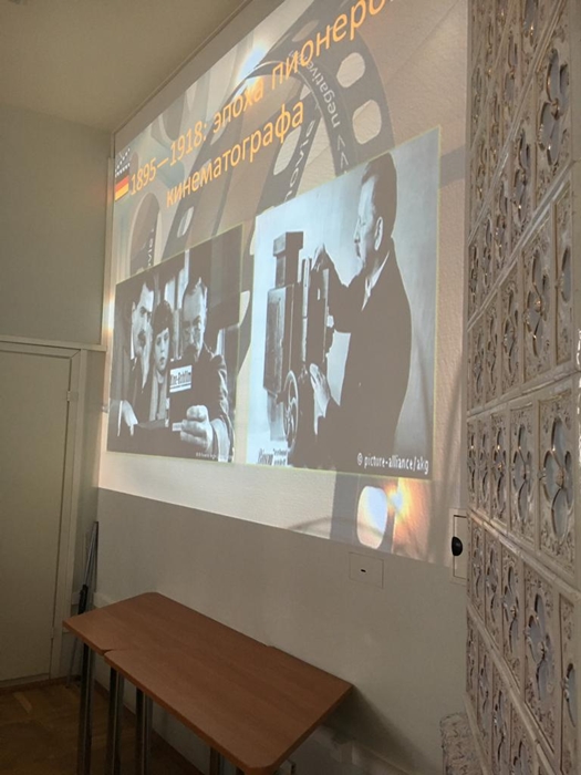 Студентам преподнесли краткую историю кино и театра Германии. Они проследили путь возникновения кинематографа в Германии в конце XIX века, который рос и развивался в неразрывной связи с европейским киноискусством и «фабрикой грёз» – Голливудом США. В начале XX века европейский центр развития искусств переместился в Германию. В 20-е годы прошлого века в Берлин – европейскую «столицу искусств» – тянулись музыканты, поэты, актёры, драматурги, режиссёры, дизайнеры всех стран, оказывая сильнейшее влияние на развитие немецкого театра, драматургии, кино. Здесь побывали М. Шагал, Л. Бакст, К. Коровин, С. Рахманинов, Ф. Шаляпин, Д. Штернберг, Ф. Ланг и другие выдающиеся деятели, преобразившие мировое искусство.