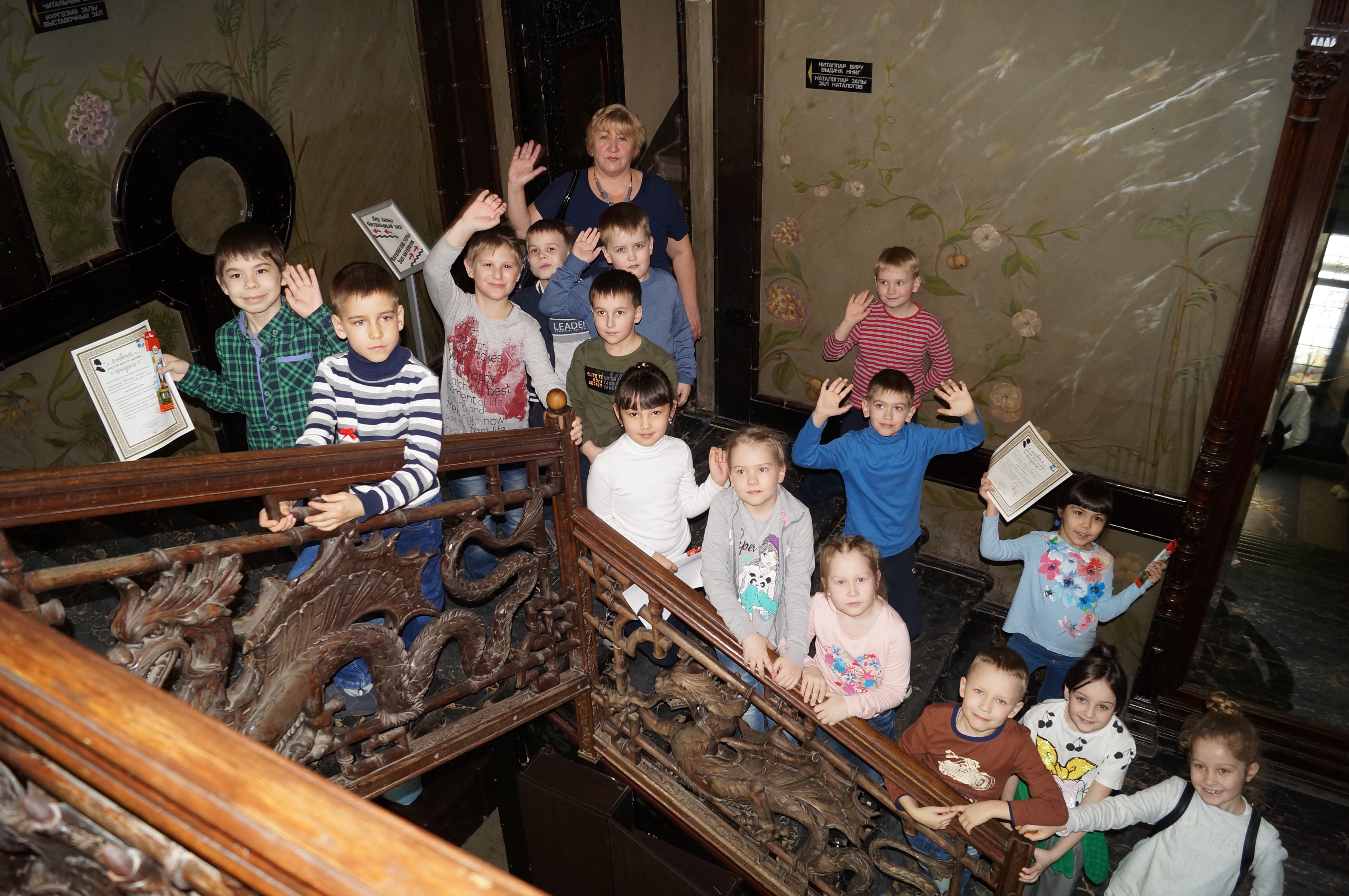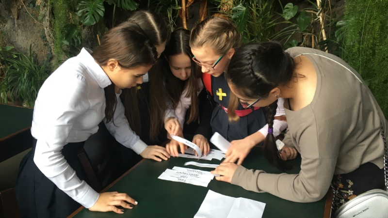 В основу квест-игры легла невыдуманная история создания одного из красивейших зданий нашего города, Дома Ушковой, в котором располагается Национальная библиотека Республики Татарстан. Каждая комната этого величественного особняка выполнена в определённом стиле и скрывает свою тайну. Пятиклассники познакомились с историей семьи Ушковых в процессе прохождения каждого этапа игры, рассмотрели удивительные росписи на потолках, скрывающие много тайн, раскрыли загадки отражений в зеркалах и многое другое. Особый интерес вызвала современная история здания, связанная с библиотекой, знакомство с работой её отделов.