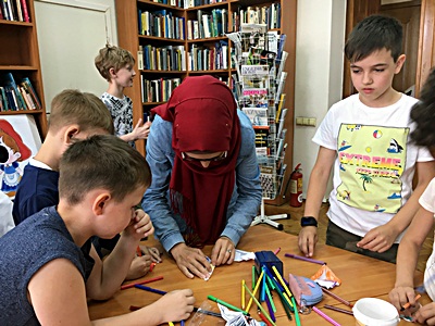 Сотрудники отдела литературы на иностранных языках Национальной библиотеки Республики Татарстан (ул. К. Маркса, д. 36) продолжают сотрудничество с учебными заведениями города. 6 и 7 июня 2019 года библиотеку посетили юные читатели пришкольного лагеря лицея №116 им. Героя Советского Союза А.С. Умеркина.