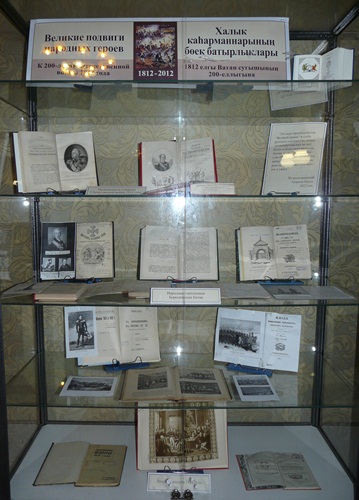 В Большом читальном зале Национальной библиотеки Татарстана (ул. Кремлёвская, д. 33) действует выставка «Великие подвиги народных героев», посвящённая 200-летию победы в Отечественной войне 1812 года.