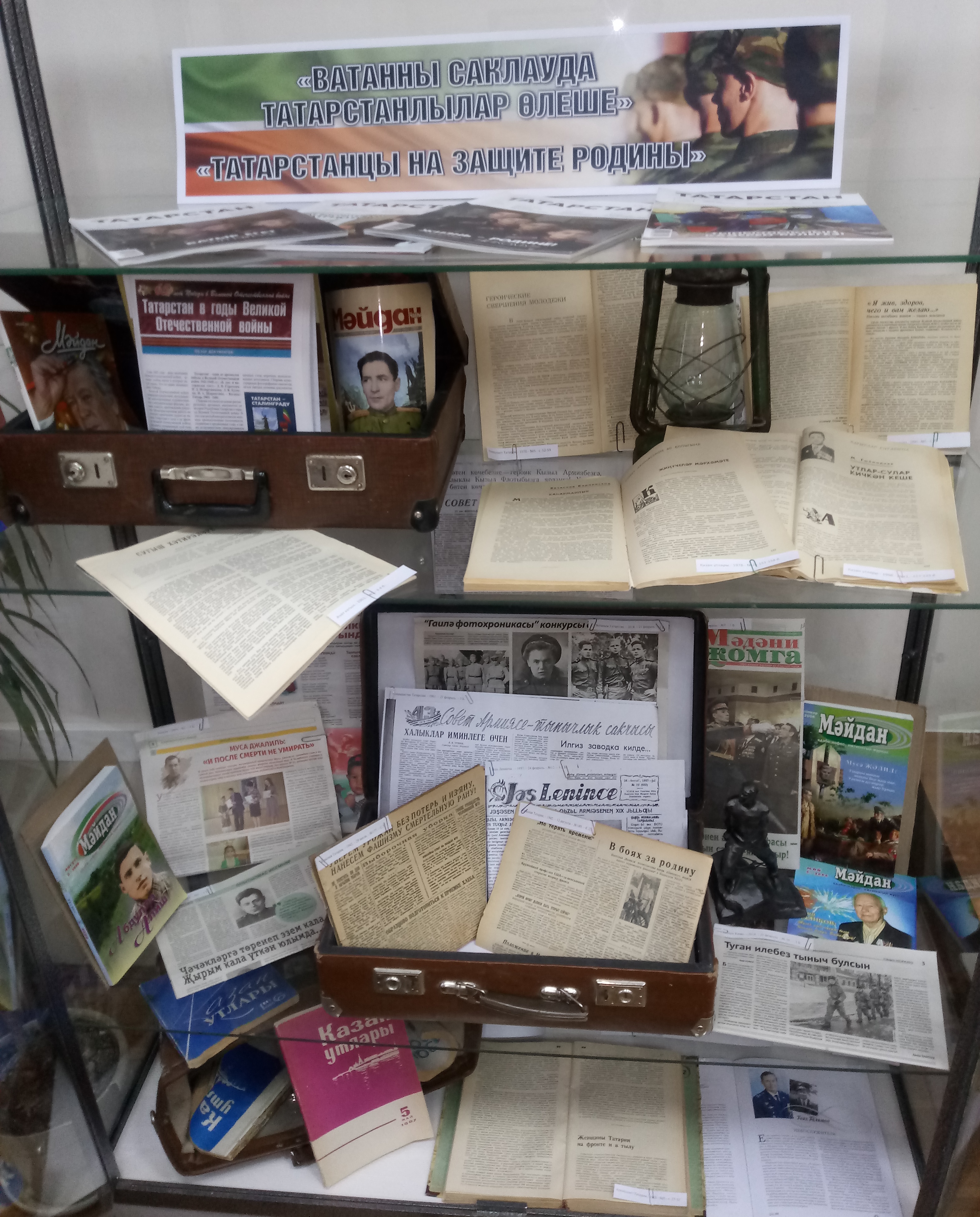 Первая выставка этого цикла – «Татарстанцы на защите Родины», посвящённая Дню защитников Отечества, – работает в читальном зале филиала библиотеки (ул. К. Маркса, д. 36) с 1 по 29 февраля текущего года. Это так называемая «выставка в чемодане», оригинальность и новизна которой заключаются в наличии предметов быта и периодических изданий прошлого века, помогающих воссоздать атмосферу ушедших времён.
