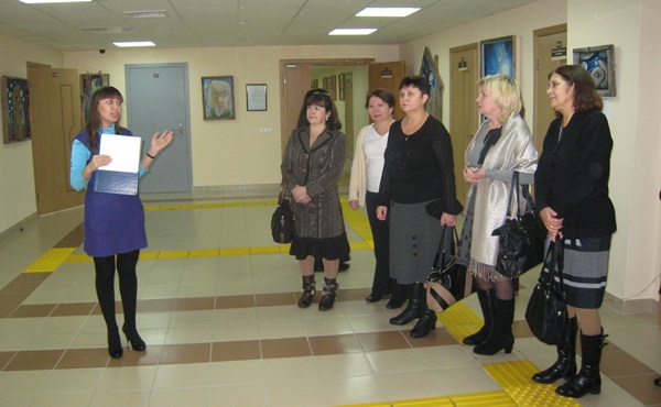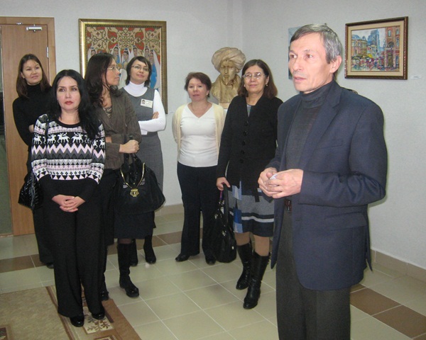 Работники Дома дружбы народов любезно провели увлекательную экскурсию по зданию, в ходе которой сотрудники Библиотеки осмотрели экспозиции в офисах всех национальных обществ. Большое впечатление на экскурсантов произвели концертный зал, зал торжеств (который прекрасно подошёл и для проведения выставок), конференц-зал, переговорная, редакция журнала "Наш дом - Татарстан", информационный центр, хореографический зал, музей Дружбы, 6 классов Многонациональной воскресной школы и другие помещения, предназначенные для эффективной этнокультурной деятельности представителей всех 115-ти национальностей, проживающих в Татарстане.