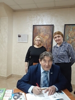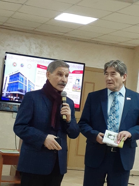 Сотрудники Национальной библиотеки Республики Татарстан были приглашены на мероприятие в качестве почётных гостей. Большой интерес участников встречи вызвала обширная книжная выставка из фондов Национальной библиотеки и личной библиотеки автора, организованная отделом татарской и краеведческой литературы библиотеки. На выставке были представлены как произведения автора, так и материалы о его творчестве.