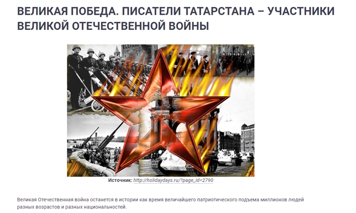 К 75-летию Победы в Великой Отечественной войне на сайте Национальной библиотеки РТ обновился электронный справочник «Великая Победа. Писатели Татарстана – участники Великой Отечественной войны».
