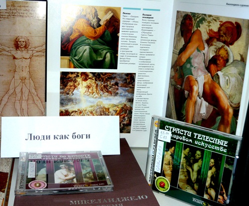 3. «Люди как боги» – представлены альбомы с репродукциями великих мастеров: Тициана, Леонардо да Винчи, Микеланджело...