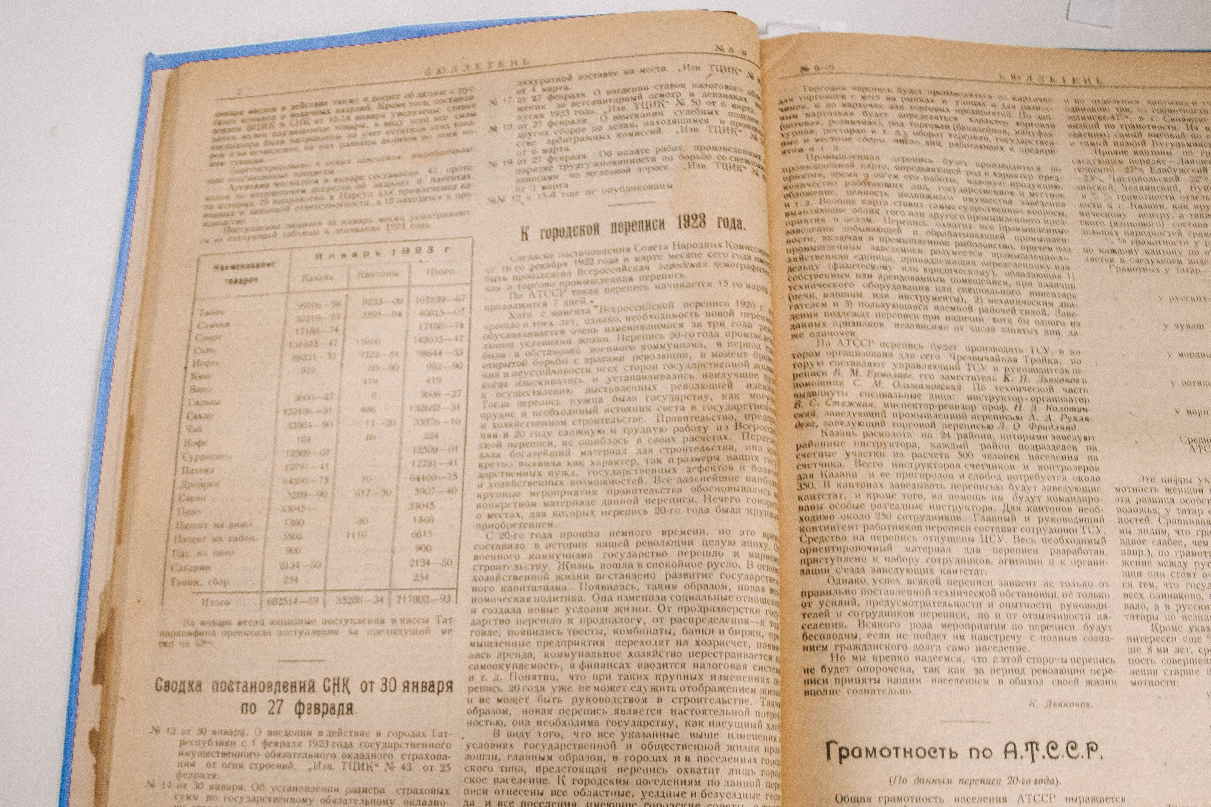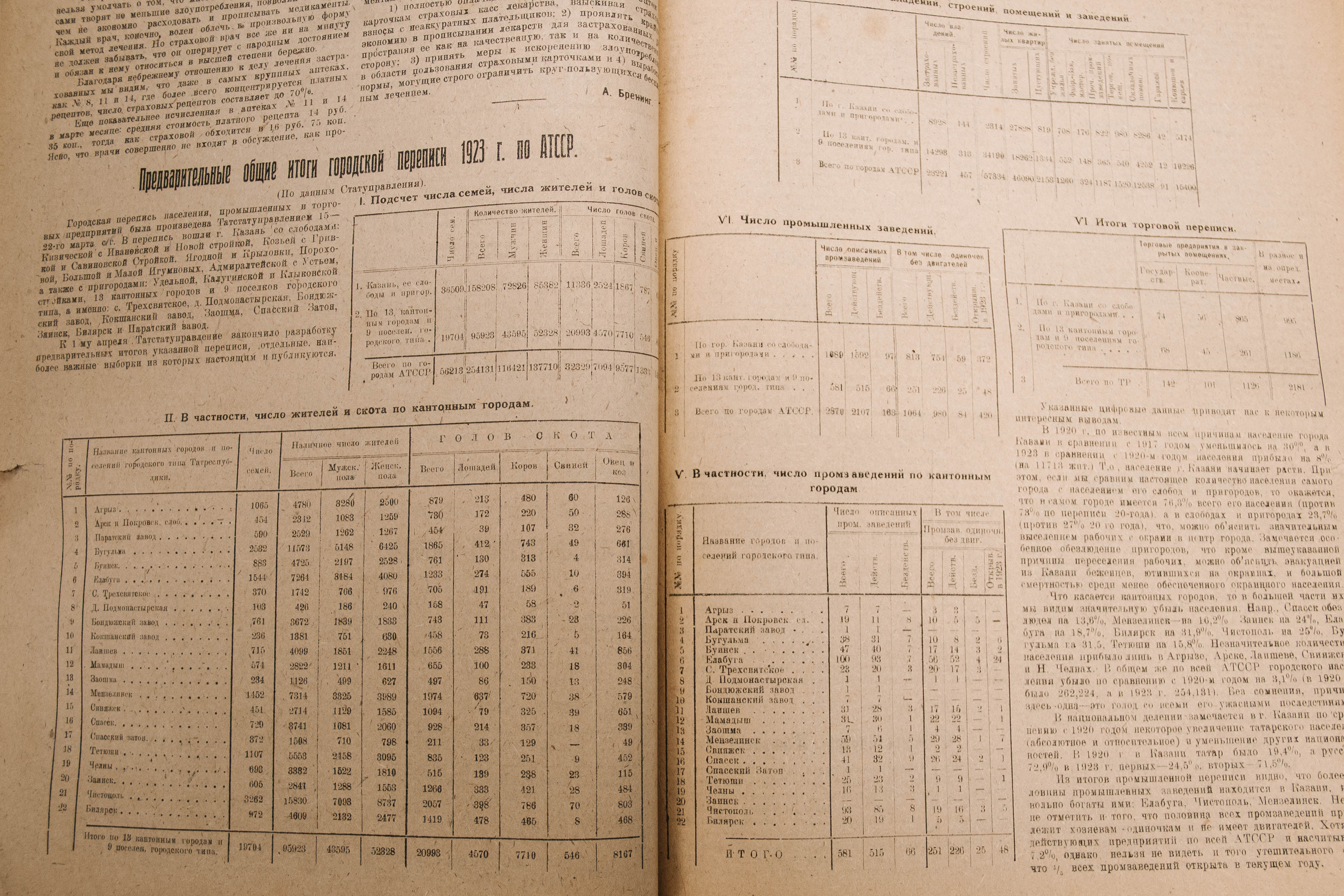 Отдел периодических изданий Национальной библиотеки РТ предлагает своим читателям интересные статьи «О городской переписи 1923 года» и «Предварительные общие итоги городской переписи 1923 г. по АТССР», опубликованные в издании «Бюллетень Совета Народных Комиссаров АТССР» от 15 марта и 21 апреля, 8 июня 1923 года.
