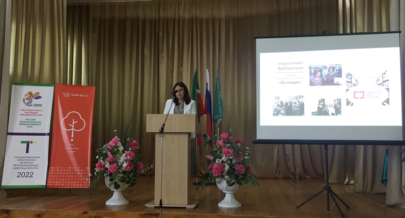 В режиме видеосвязи к собравшимся обратилась Щеглова Марианна Владимировна, главный специалист отдела по работе с регионами Департамента модельных библиотек Российской государственной библиотеки, г. Москва. В своём выступлении она дала сравнительную характеристику модельных библиотек Республики Татарстан и регионов России.