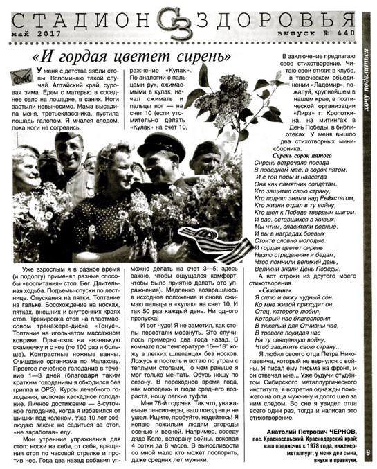 Это издание всегда пользовалось огромной популярностью благодаря публикациям о здоровом образе жизни, сохранении и восстановлении здоровья доступными каждому способами. Многим журнал помогает хорошо себя чувствовать и плодотворно трудиться, а кому то, поверить в себя, в силы своего организма.