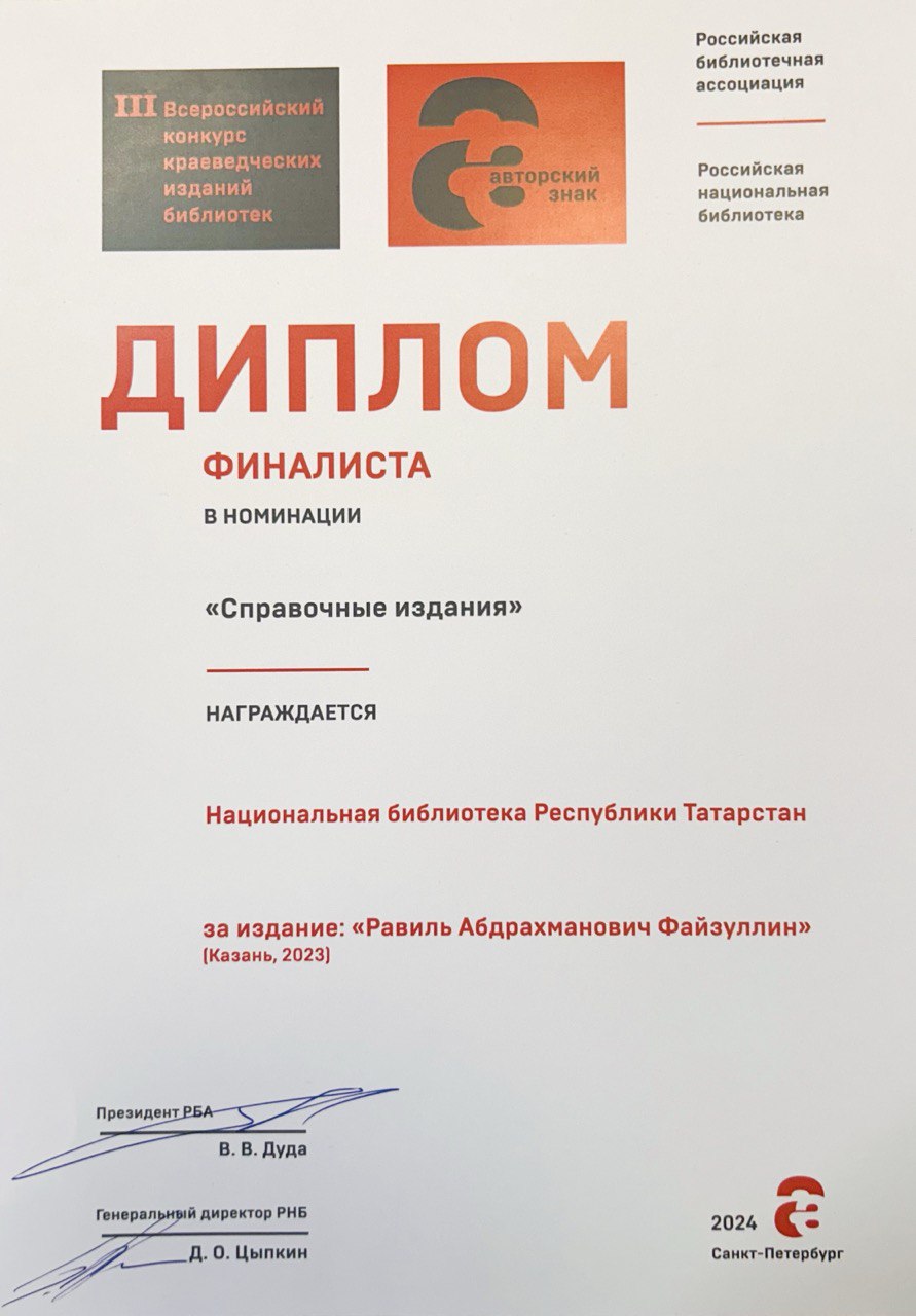 Национальная библиотека Республики Татарстан на конкурсе «Авторский знак»-2024 была представлена в номинации «Справочные издания» и вошла в число финалистов.