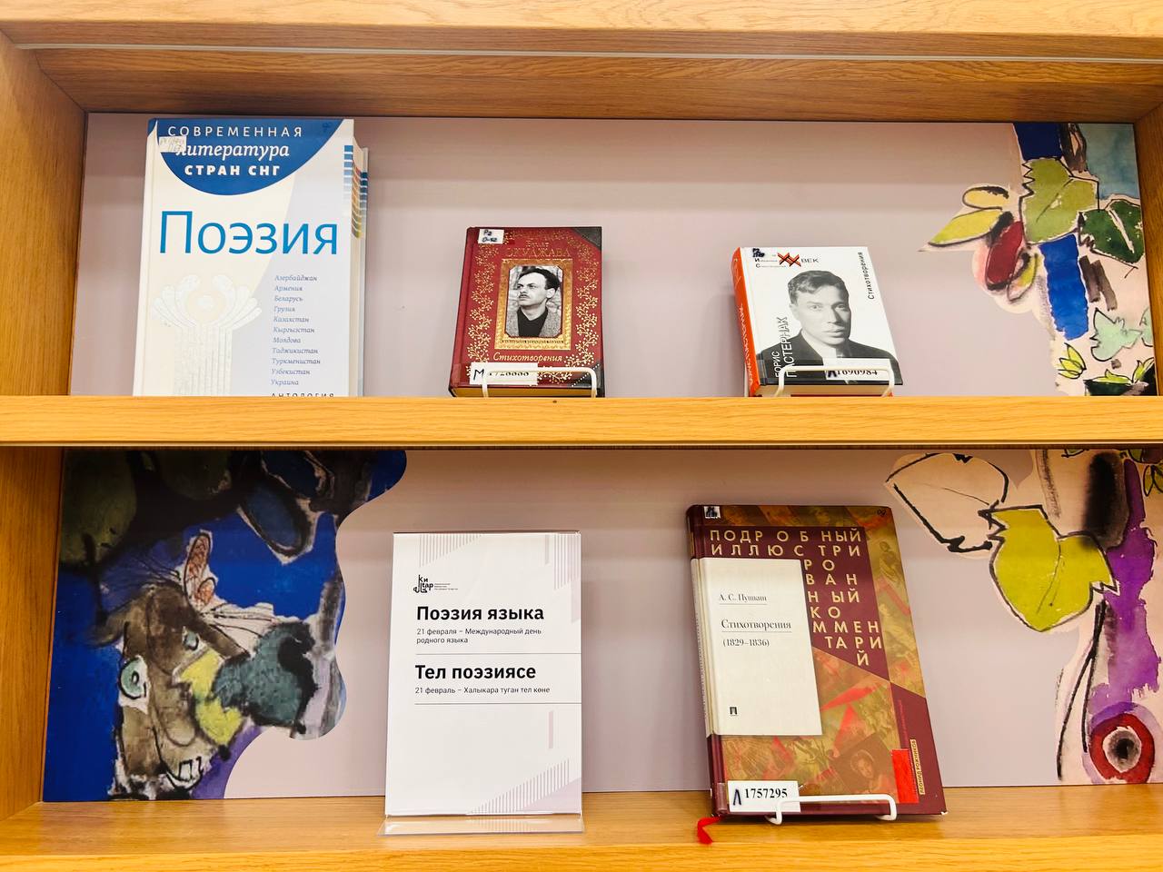 Ещё одна новая выставка, открывшаяся в классическом читальном зале, посвящена Международному дню родного языка. Праздник отмечается ежегодно 21 февраля. Из всех литературных жанров именно поэзия наиболее тонко и точно передает красоту и своеобразие того языка, на котором она создается. Стихи раскрывают душу поэта, рассказывают о народе, воспитавшем его.
