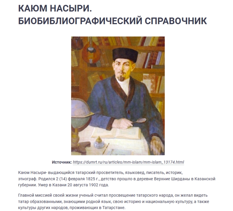 К 200-летию со дня рождения учёного, писателя и просветителя Каюма Насыри на сайте Национальной библиотеки РТ появился персональный биобиблиографический электронный справочник.