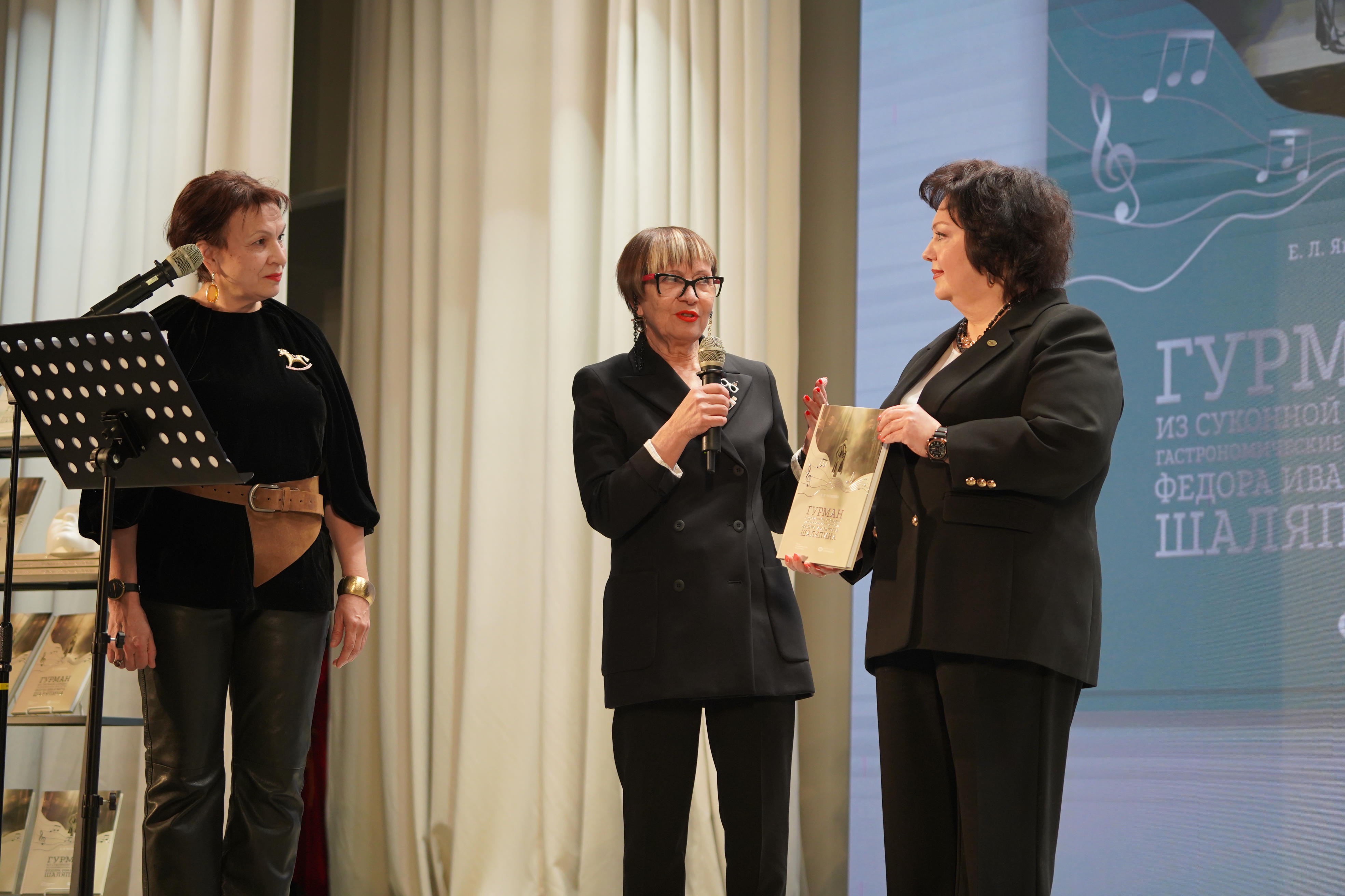 Гостям презентации был представлен иммерсивный спектакль – представление книги. Погрузиться в атмосферу эпохи помогали видеоролики, действующими лицами которых стали друзья певца: Сергей Васильевич Рахманинов и Константин Алексеевич Коровин, предприниматель, меценат, владелец Частной оперы Савва Иванович Мамонтов, отец певца Иван Яковлевич Шаляпин, первая жена Иола Игнатьевна Торнаги, вторая жена Мария Валентиновна Петцольд, а также русский оперный певец, педагог Дмитрий Андреевич Усатов.