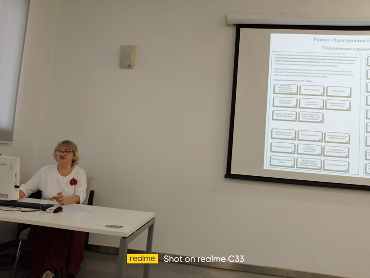 Сотрудник Информационно-библиографического отдела НБ РТ Ефимовских Т. Б. познакомила студентов с библиографическими справочниками, посвященными Великой Отечественной войне, которые размещены на сайте библиотеки.