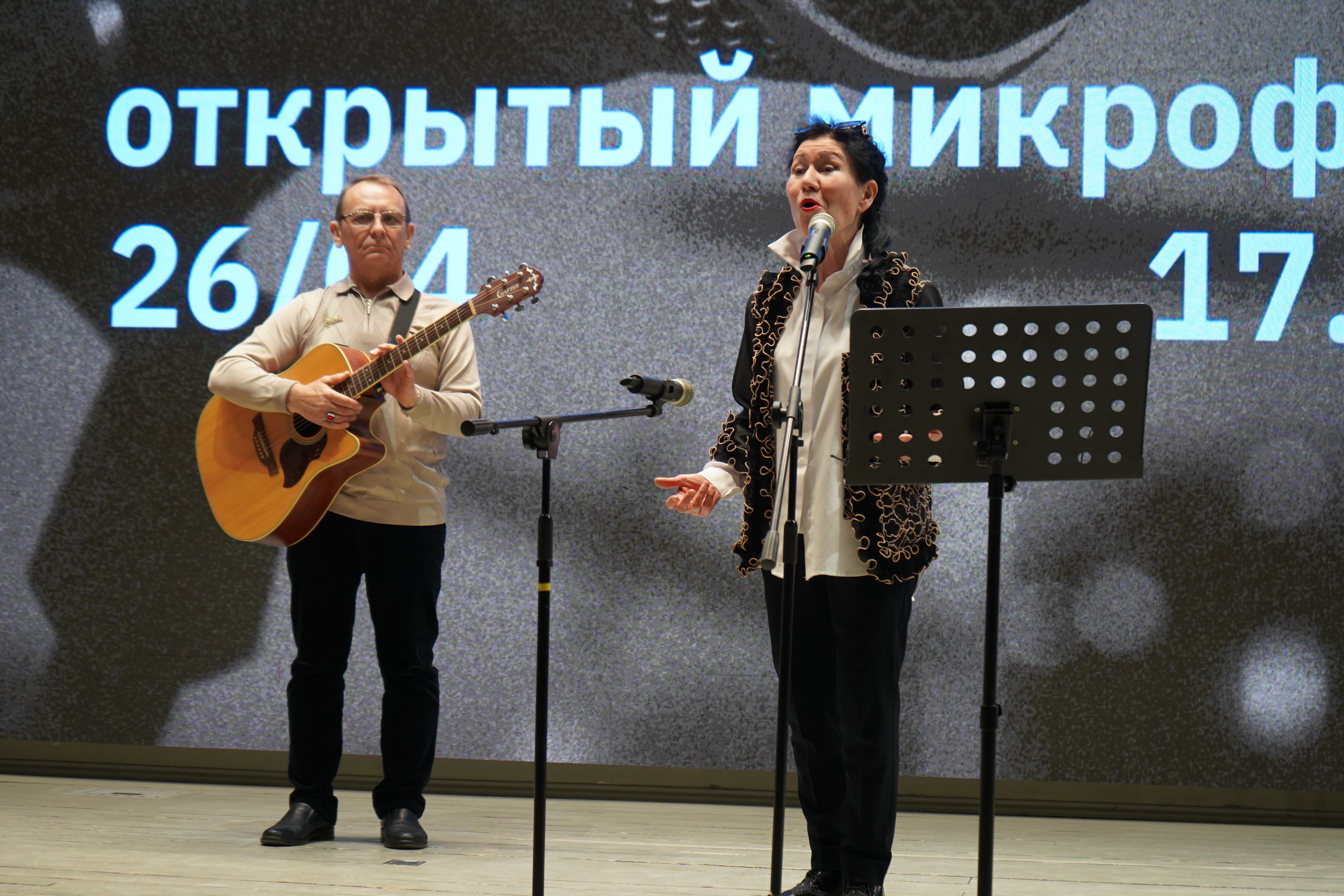 Гостями Национальной библиотеки и участниками «Открытого микрофона» 26 апреля стали народный артист РТ, актриса театра им. Г. Камала Халима Искандерова; участница проекта «ТЮЗ в школе», актриса казанского Театра юного зрителя Эльвина Сафина; мастер художественного слова, журналист и переводчик Миляуша Юсупова; представитель клуба авторской песни «Вертикаль» Борис Бакиров; казанские поэты Ильгам Мязитов и Мунир Зеляев; ученики татарской гимназии №15; студенты Казанского театрального училища и иностранные студенты КНИТУ-КАИ. Ребята из Индонезии, Нигерии, Южной Кореи и других стран на русском языке прочитали стихотворения Мусы Джалиля, Анны Ахматовой, Ольги Бернгольц, Евгения Евтушенко, Роберта Рождественского, Булата Окуджавы, Константина Симонова и других авторов.