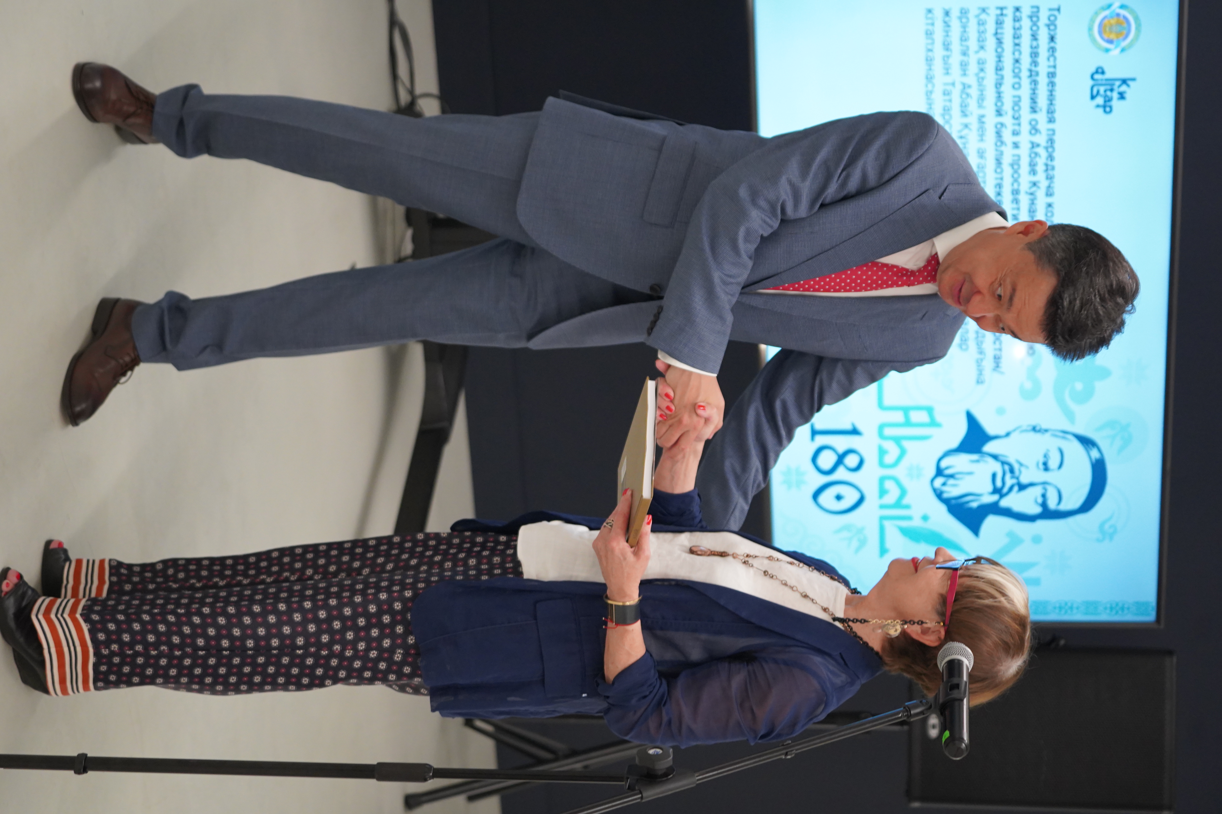«Абай Кунанбаев был талантлив во всех своих ипостасях. Но главное, что он был мыслитель. Поэтому всё остальное, всё к чему он прикасался принимает особенную глубину. Только мыслитель может увидеть и прочувствовать душу своего народа. Быть влюбленным в него всем сердцем, знать и почитать его традиции и обычаи. И всё это мы видим в его произведениях, он это передал. И для нас это своеобразный стержень понимания того, что такое казахи. Мы очень близки, понимаем ваш язык и сегодня библиотека обрела дополнительную глубину, потому что у нас появились новые книги этого великого мыслителя» - отметила во время торжественной передачи коллекции директор Национальной библиотеки РТ Мадина Тимерзянова.