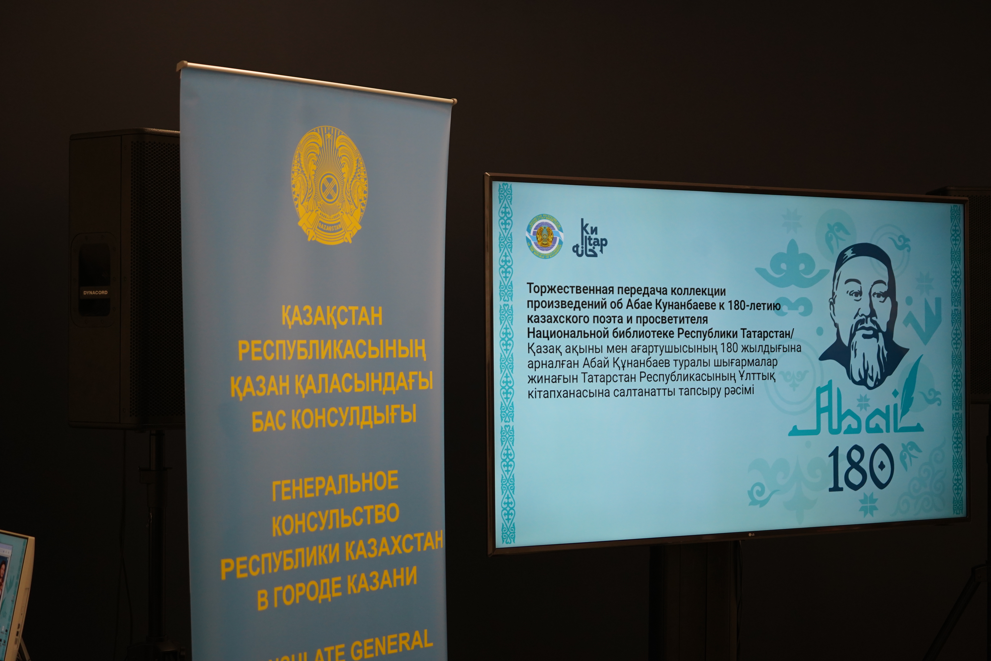 В Казахстане его почитают также, как Габдуллу Тукая в Татарстане, в Казани в честь этого просветителя названа улица и установлен бюст. Речь об основоположнике казахской письменной литературы, выдающемся поэте, мыслителе, композиторе и общественном деятеле Абае Кунанбаеве. В этом году исполняется 180-лет со дня его рождения. В рамках этой даты Консульство Республики Казахстан в Казани передало в дар Национальной библиотеке Республики Татарстан 17 коллекцию произведений о великом просветителе. Торжественная церемония состоялась 6 августа в выставочном зале Национальной библиотеки РТ.