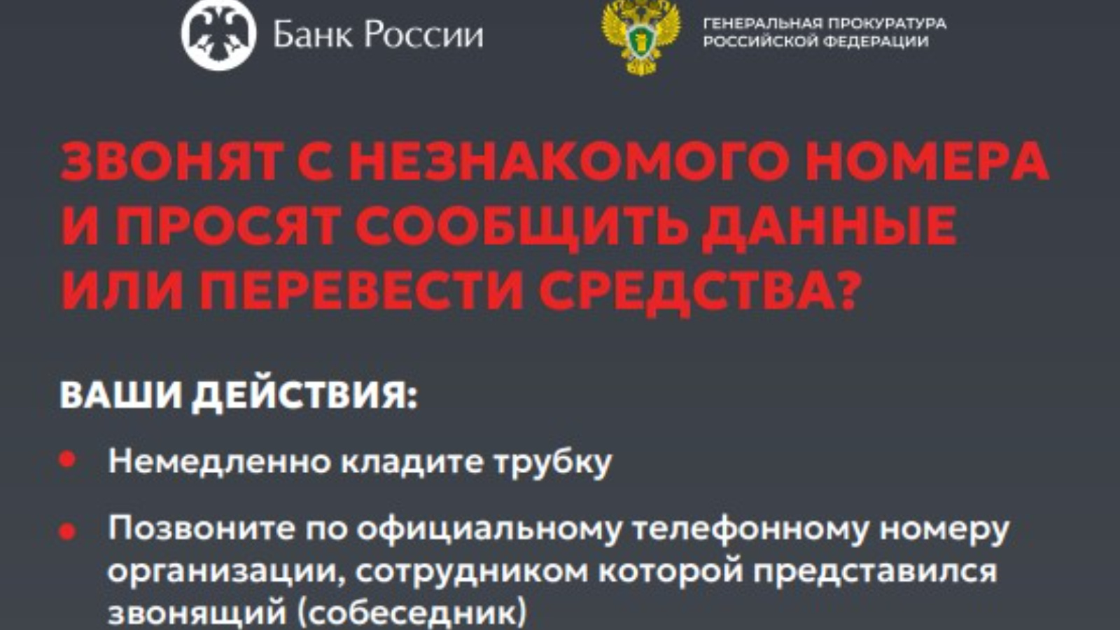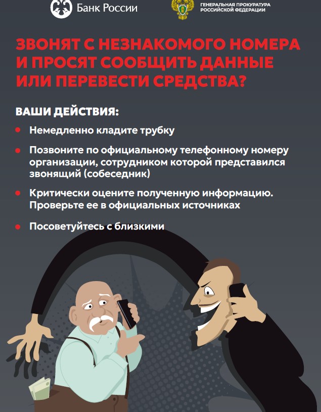 Количество мошенничеств с использованием телефона и интернета продолжает расти. Чтобы вы могли распознать обман и защитить свои сбережения, мы публикуем полезные плакаты, которые подготовили Генеральная прокуратура Российской Федерации и Банк России.