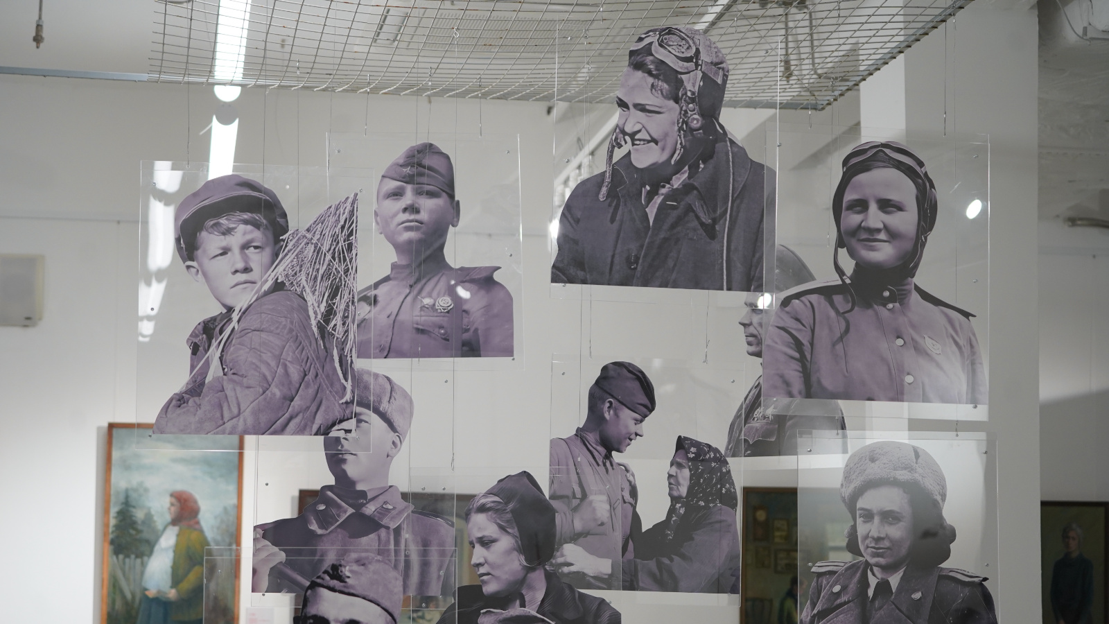 Особую пронзительность экспозиции придает масштабная инсталляция, составленная из фотодокументов военных лет, которая занимает центральное место в зале. Лица солдат, тружеников тыла, матерей и детей позволяют зрителю ощутить всю тяжесть и надрывность пути к Победе.