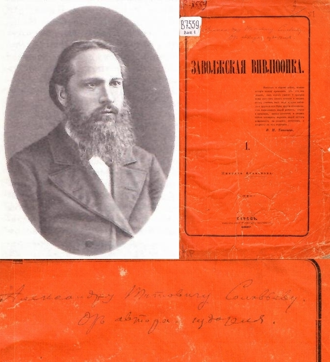 В отделе рукописей и редких книг хранится историко-литературное издание Н. Я. Агафонова «Заволжская вивлиофика», опубликованное в 1887 году. В сборнике собраны очерки, статьи и воспоминания автора. На обложке – дарственная запись Агафонова «Александру Титовичу Соловьеву от автора-издателя».