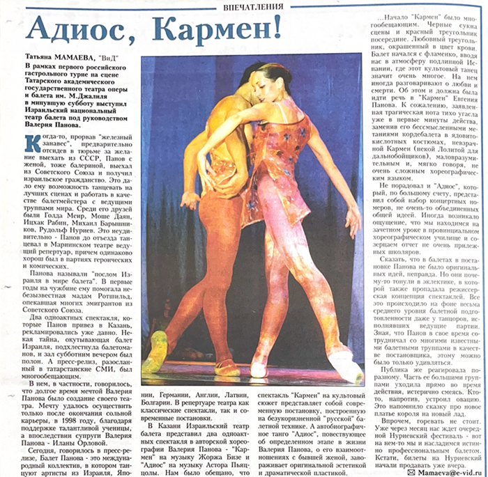 Мамаева Татьяна. Адиос, Кармен! // Время и Деньги. – 12.04.2011. – № 62