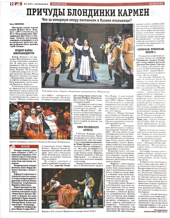 Любимова Ольга. Причуды блондинки Кармен // Аргументы и факты. – 2025. – № 6