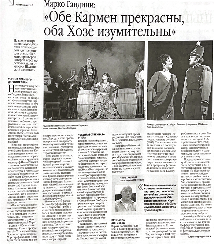 Гандини Марко. Обе Кармен прекрасны, оба Хозе изумительны // Республика Татарстан. – 25.01.2025. – № 8