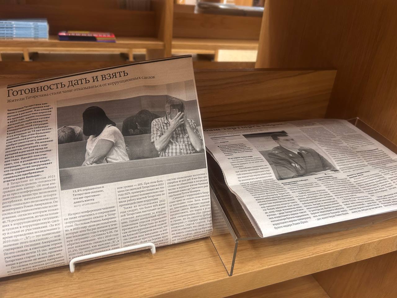 На выставке представлены газеты и журналы из фондов Национальной библиотеки Республики Татарстан, в которых раскрывается антикоррупционная государственная политика России, меры противодействия коррупции и ответственность за коррупционные преступления. Выставка рекомендована для широкого круга читателей, интересующихся актуальными вопросами борьбы с коррупцией.