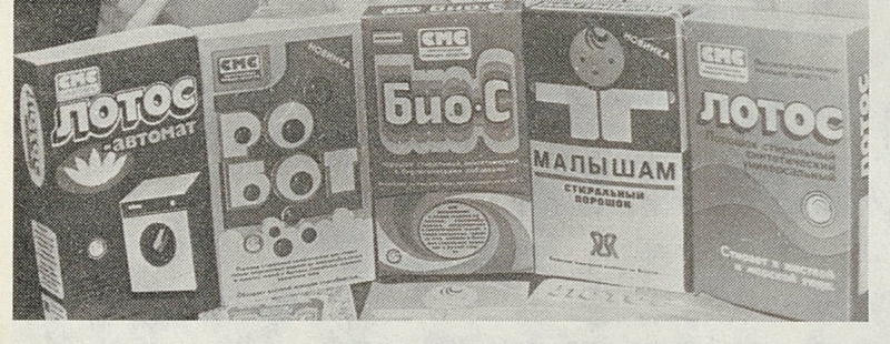 Наряду с этим расширялся ассортимент вырабатываемых синтетических моющих средств. Теперь он был представлен шестью наименованиями: порошок «Новость», паста «Новость», порошок для механизированных прачечных, порошок «Волга», «Луч», «Лотос».