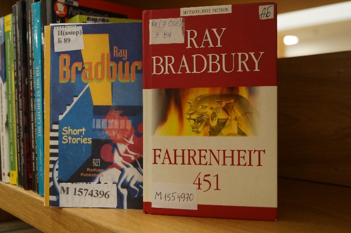 9. Брэдбери, Рэй. 451° по Фаренгейту: [роман]; Рассказы / Рэй Брэдбери; [пер. с англ.; сост. О. Миклухо-Маклай, Т. Шушлебиной]. – Санкт-Петербург: Азбука, 2000. – 381, [3] с.