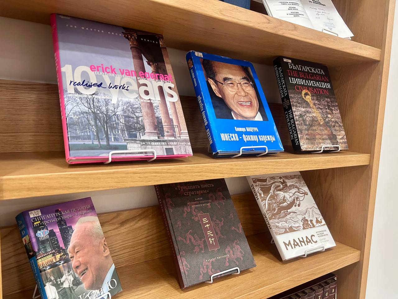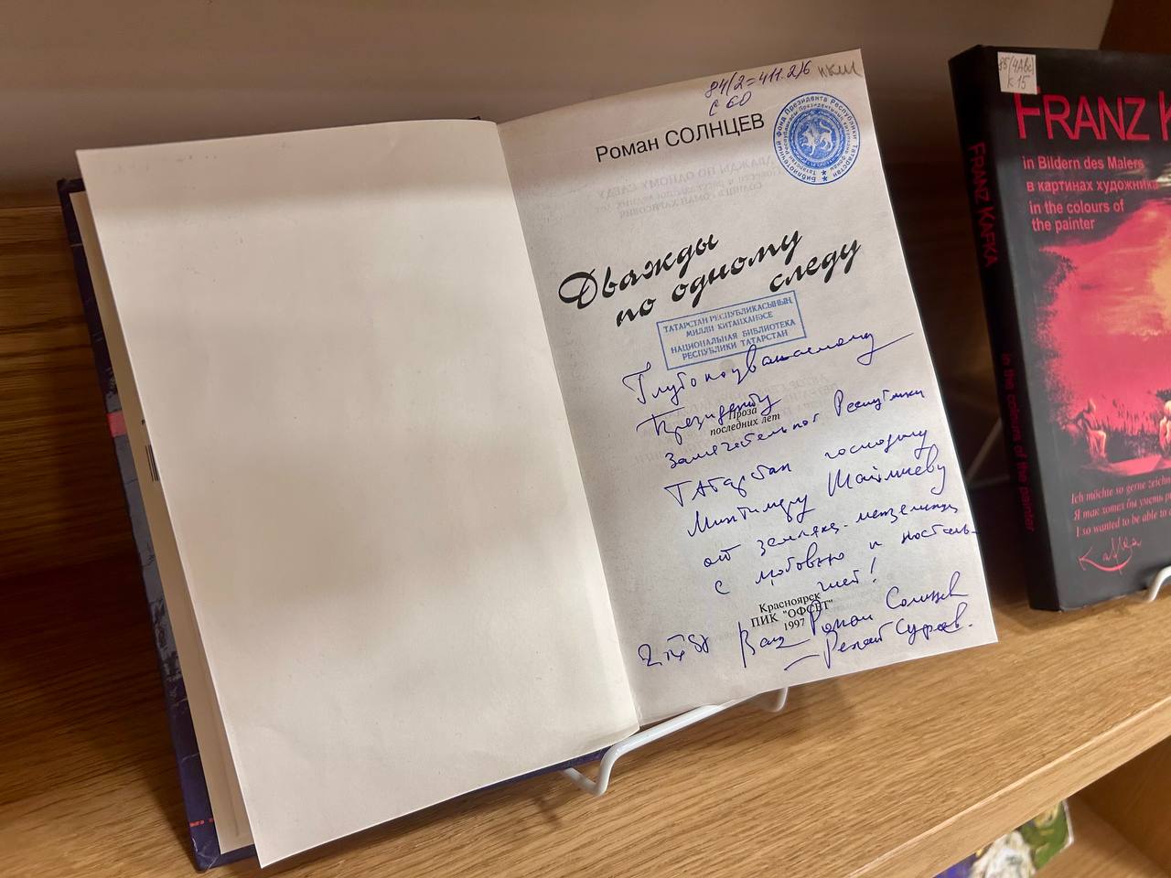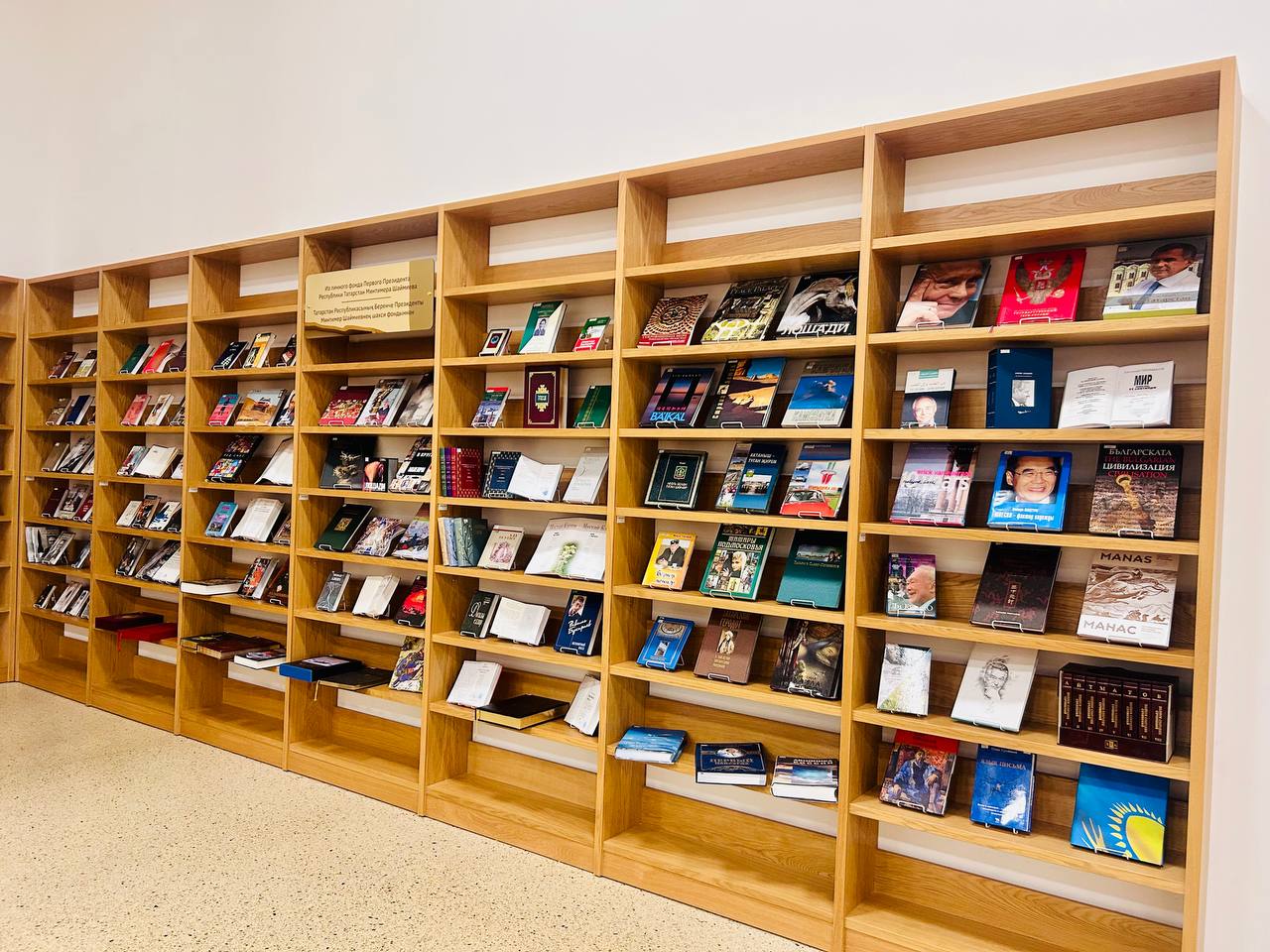 Многие из этих книг с подписями и посланиями от авторов (собрание сочинений Олжаса Сулейманова, сборник стихов Беллы Ахмадуллиной, книга Евгения Примакова «Мир после 11 сентября», альбом с репродукциями картин знаменитого космонавта Алексея Леонова «Земная и космическая живопись», «Мои лучшие партии» чемпиона мира по шахматам Анатолия Карпова и другие). В декабре 2023 года Государственный советник передал в дар НБ РТ еще около 1000 уникальных изданий.
