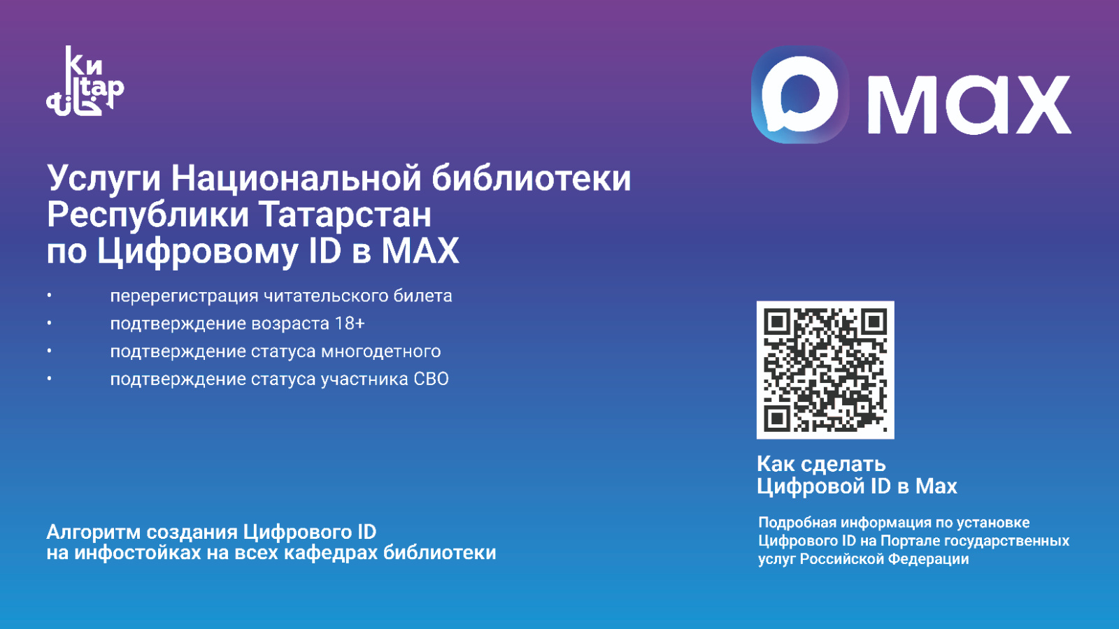 В Национальной библиотеке Республики Татарстан стали доступны услуги, оказываемые с помощью сервиса «Цифровой ID» в мессенджере MAX: