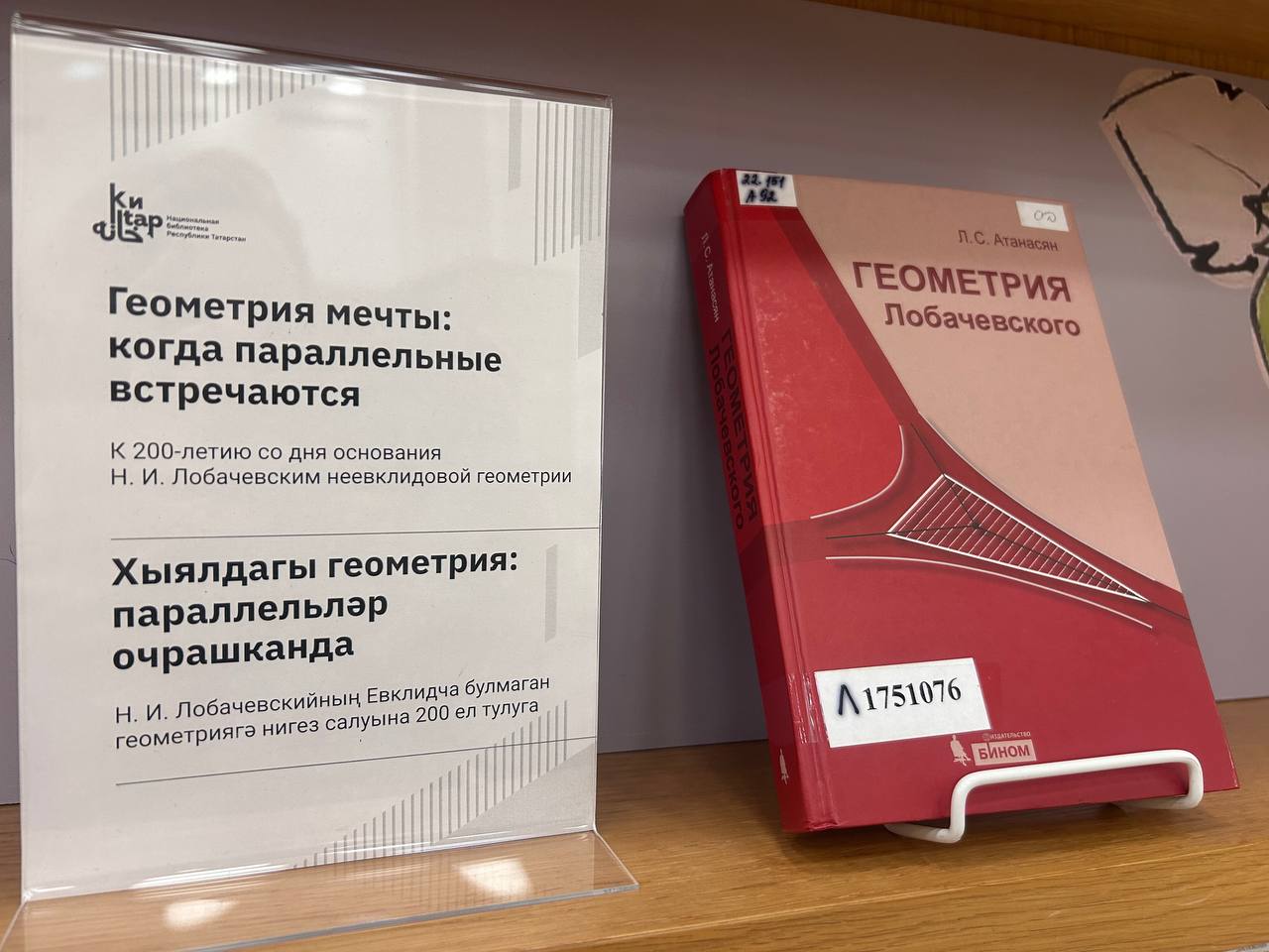 С 22 по 28 февраля в классическом читальном зале Национальной библиотеки РТ проходит выставка «Геометрия мечты: когда параллельные встречаются», посвящённая 200-летию со дня основания Н. И. Лобачевским неевклидовой геометрии.