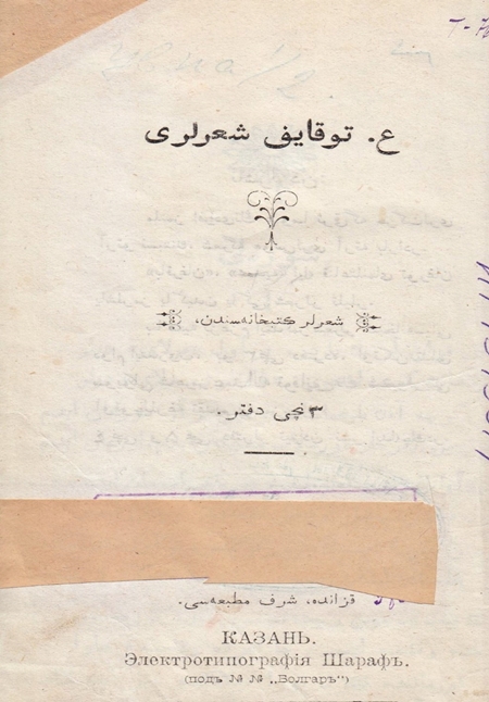 Тукаев, Габдулла. Габдулла Тукаев шигырьләре. – Казан: Шәрәф матбагасы, 1907