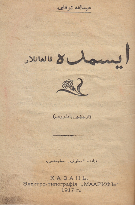 Тукай, Габдулла. Исемдә калганнар. – Казан: «Мәгариф» матбагасы, 1917