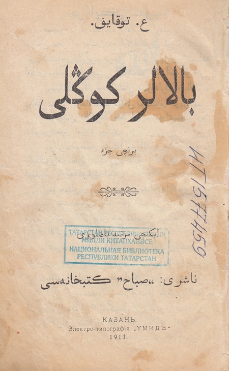 Тукай , Габдулла. Балалар күңеле. Беренче җөзъэ. – Казан: Электро-типография «Умидъ», 1911