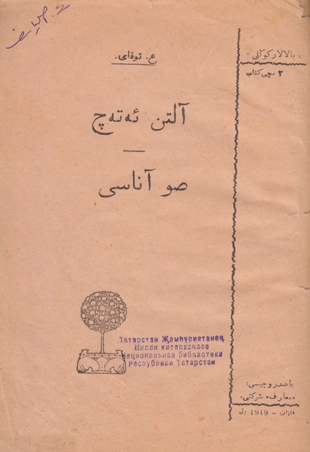Тукай, Габдулла. Алтын әтәч. Су анасы. – Казан: «Мәгариф» матбагасы, 1919