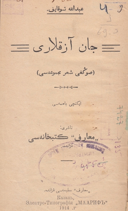 Тукай, Габдулла. Җан азыклары: соңгы шигырь мәҗмугасы. – Казан : «Мәгариф» матбагасы, 1914