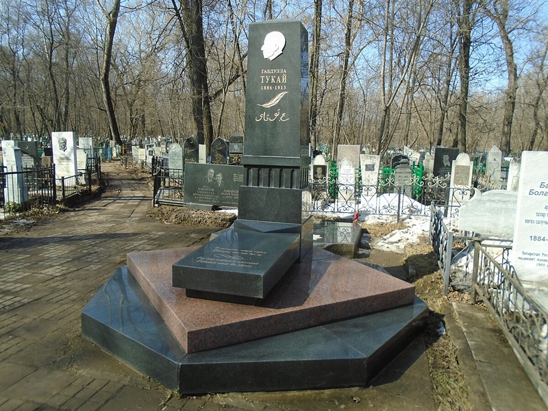 Тукая не стало 15 апреля 1913 года. Его похоронили на Татарском кладбище Ново-Татарской слободы в Казани. В день похорон были приостановлены занятия в городских медресе, закрыты магазины, а в татарских газетах печатали соболезнования и некрологи. На похоронах поэта использовались элементы, которые не характерны для традиционных мусульманских похорон – это траурные ленты и венки. В случае Тукая траурные ленты и венки стали способом выразить общественное соболезнование, подчеркнуть его значимость.