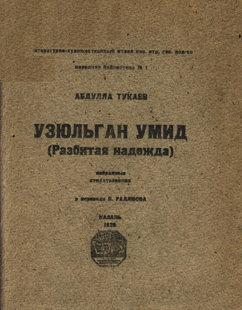 Тукаев А. «Узюльган умид» («Разбитая надежда») / перевод с татарского П.Радимова. – Казань, 1920. – 30 с.