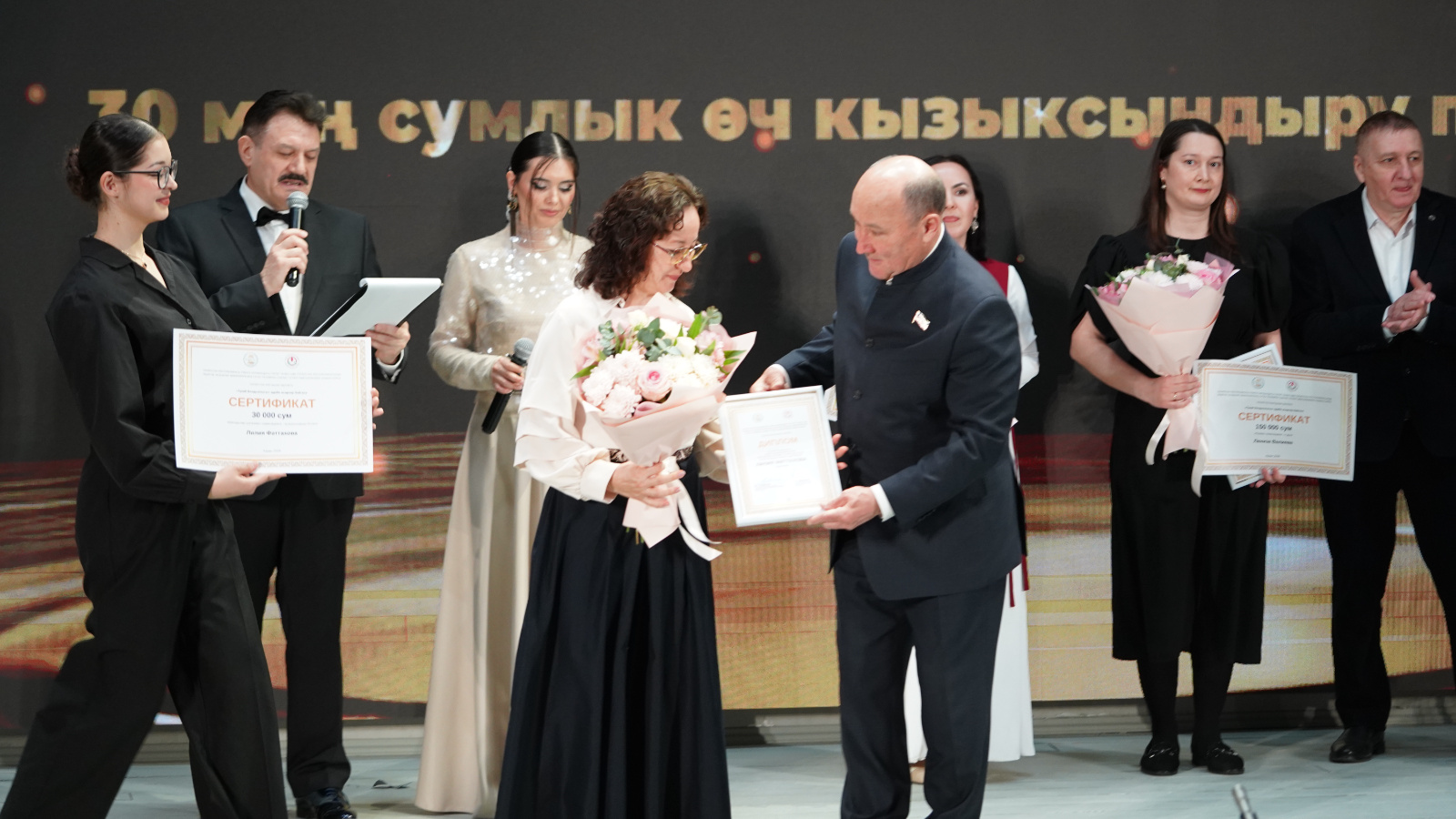 В награждении победителей во время торжественной церемонии участвовали и.о. председателя Госсовета РТ Марат Ахметов, руководитель исполкома Всемирного конгресса татар Данис Шакиров, председатель Союза писателей РТ Ркаил Зайдулла и доктор филологии и профессор КФУ Дания Загидуллина.